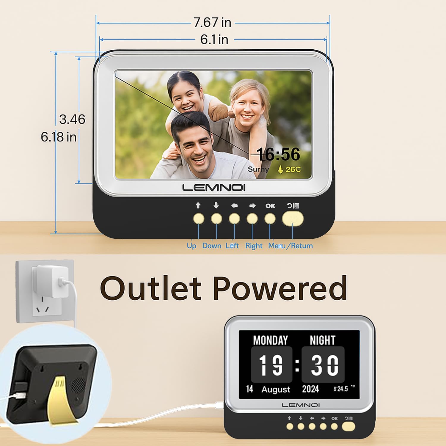 | Additional Features | Adjustable Brightness, Auto Dimmable, Daylight Saving, Temperature Display |