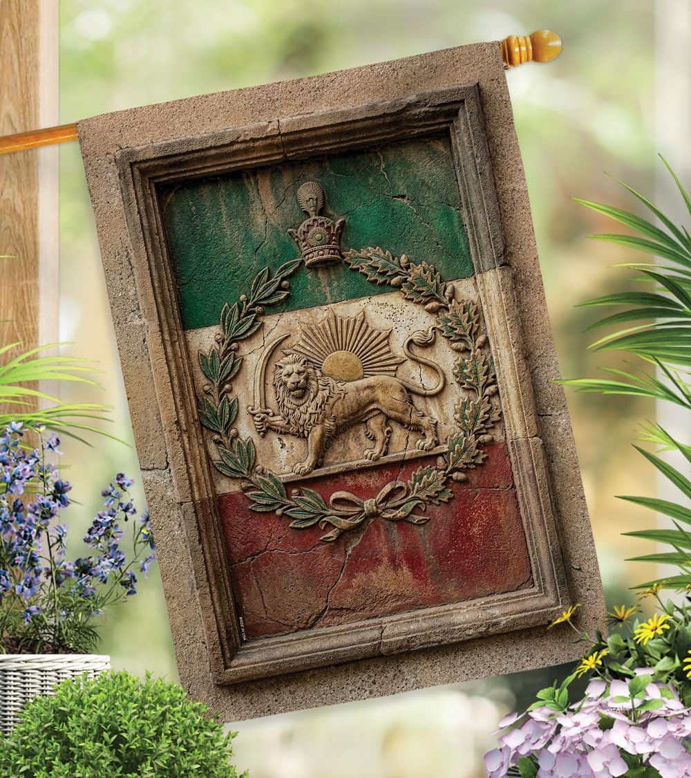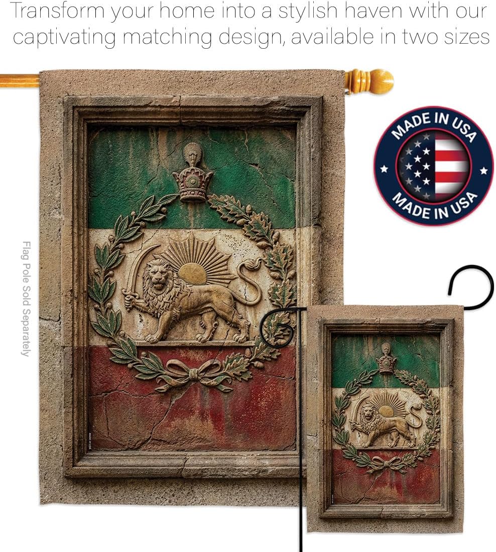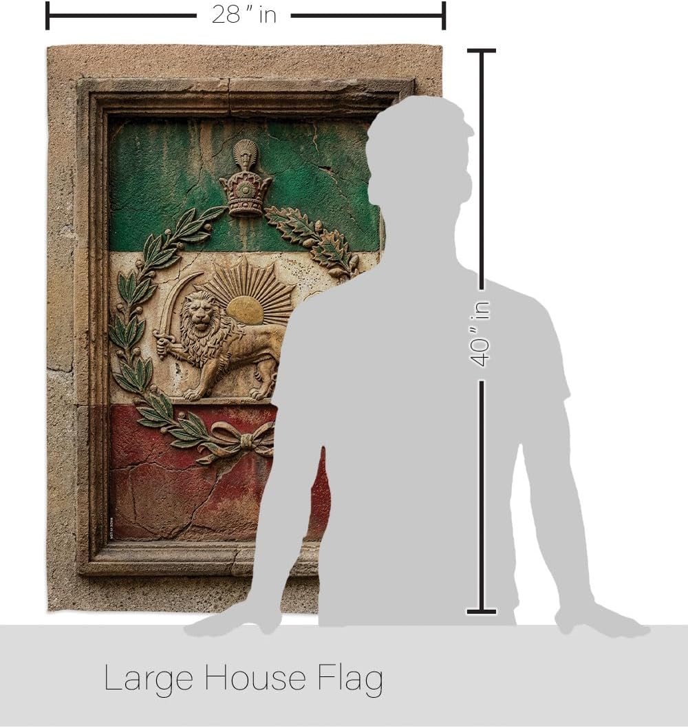 Beautiful Large House FlagIranian Flag have variety of House Flag for all occasions. Uniquely design for hanging indoor or outdoor use. We are committed to offering you exceptional values. Our customers enjoy displaying our House Flag for longer periods. Specification: Theme: Historic Lion and Sun Imperial Iran National Flag Size: House Flag 28" x 40" Print: Double-Sided Readable: Readable Both Sides Material: Weather Resistant 3 Layers Blockout Stitching: Double Stitched Display: Vertical Hang Type: Sleeve Artist: © Rose Gordon Special Features: Origin: Made In USAPackage Include: 1 pc x House Flag 28" x 40" Package Decorative FlagsFor more than a decade, we’ve been dedicated to manufacturing flags with no comparison in quality and beautiful designs. Our flags are made with our Pro Guard material that is soft to the touch and designs can be read correctly on the flag. A feature that our customers will love. We are committed to using eco-friendly inks that won’t leave a foot print in our environment.