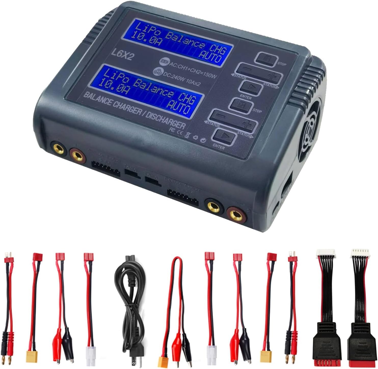 PUSLAKO LiPo Battery Charger Dual RC LiPo AC150W DC240W 10A C240 Balance Battery Chargers Discharger for 1-6S LiPo Li-ion Life LiHV 1-15S NiCd NiMH PB Smart Battery RC Car