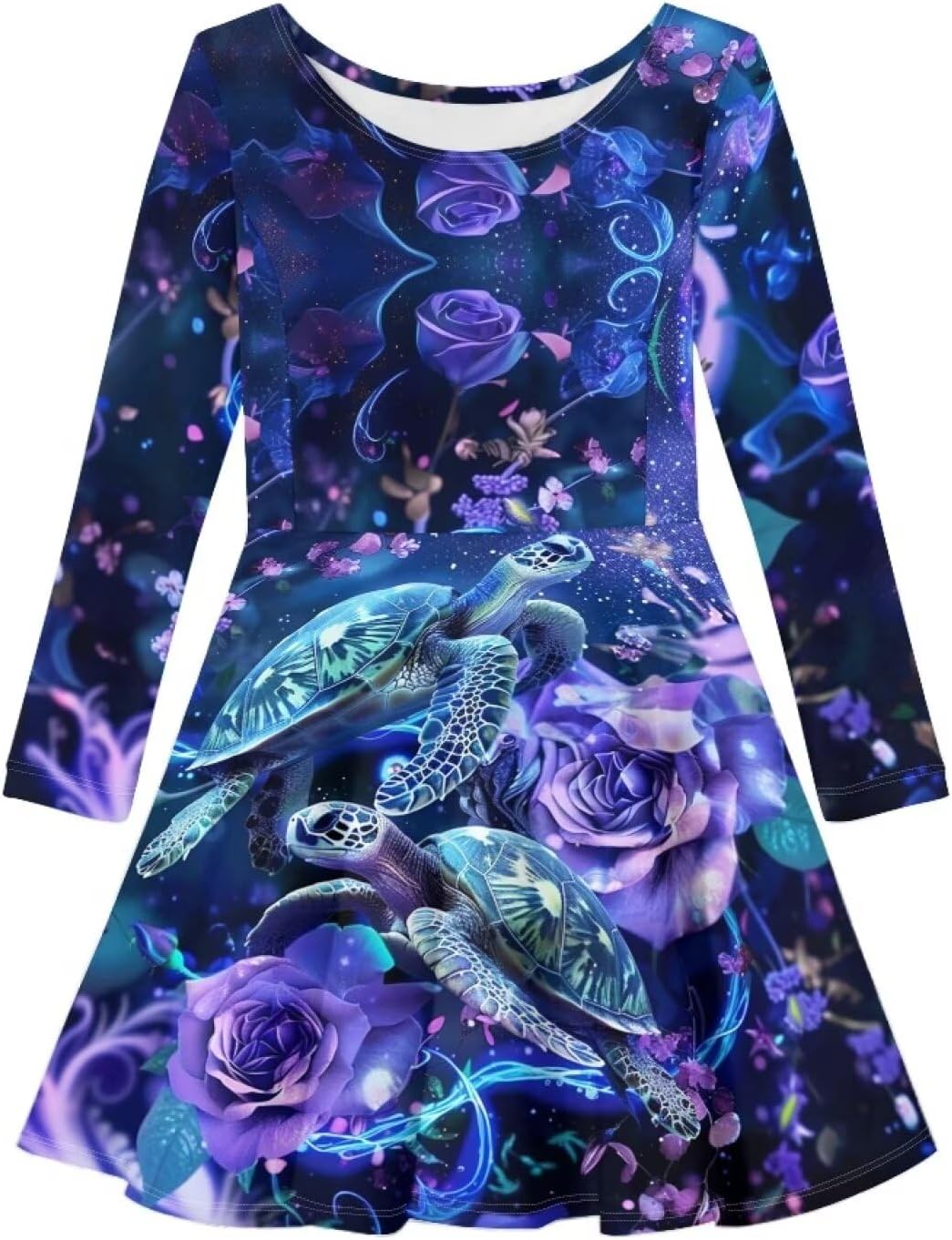 Girls long sleeve casual dress Twirl dresses suitable for summer, spring, fall, easy to be paired with jackets or cardigans.Perfect for school, daily wear, home wear, party, artistic photo shoot, family gathering, holiday and any occasion. Perfect Gift for Easter, Festival, Birthday Party, Back to school present.