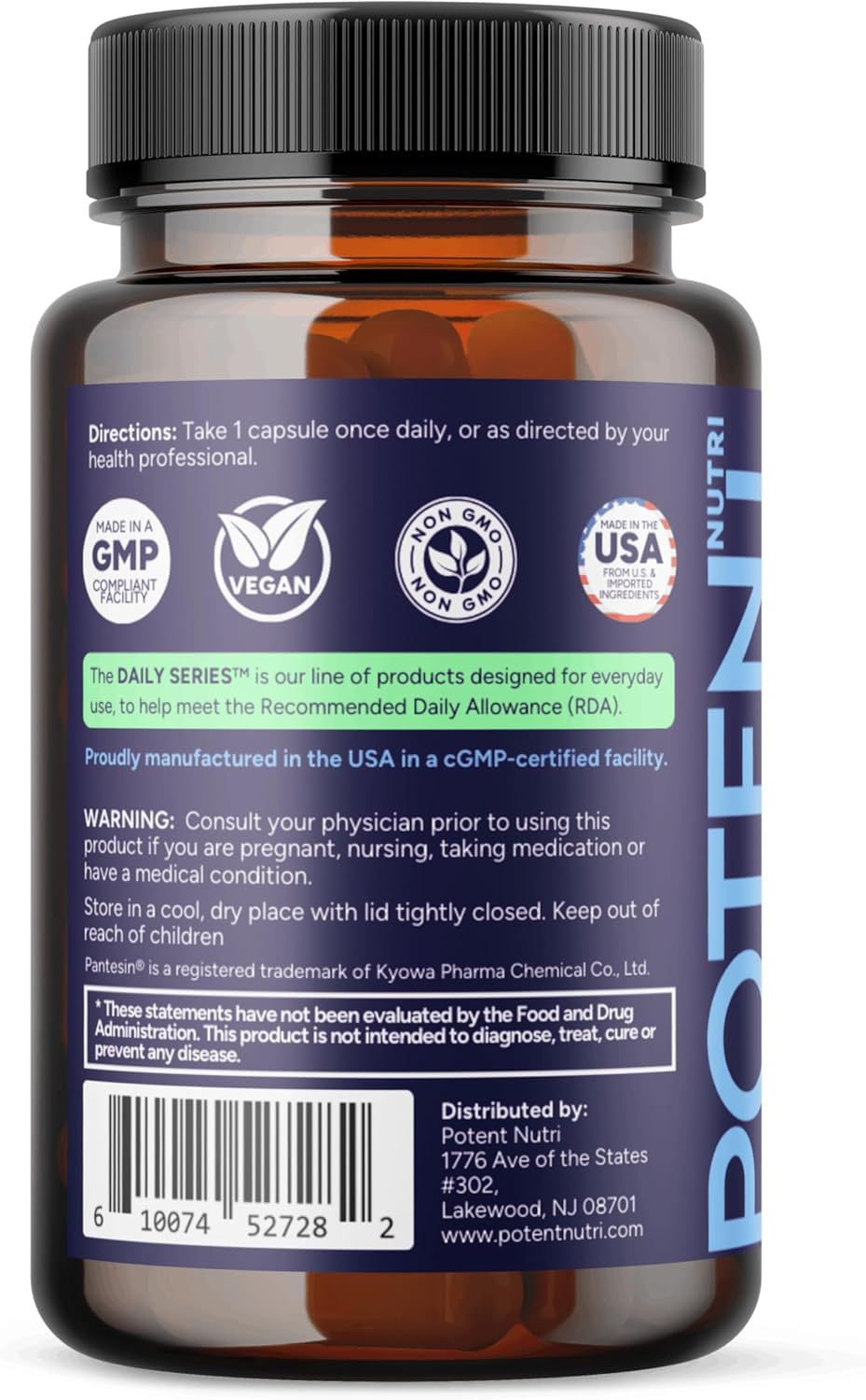 Low-Dose B-Complex — Complete Daily Support Without the Side Effects Premium Active Ingredients Formulated with advanced, high-quality ingredients including: Pantesin HF55 (Pantethine) Benfotiamine (Vitamin B1) Riboflavin-5-Phosphate (Vitamin B2) Pyridoxal-5-Phosphate (Vitamin B6) L-5-Methyltetrahydrofolate (Folate) Methylcobalamin & Adenosylcobalamin (Vitamin B12) Nicotinic Acid (Niacin) in gentle, low-dose form Each nutrient is included in its most absorbable and active form to maximize benefits and minimize flushing or overstimulation.