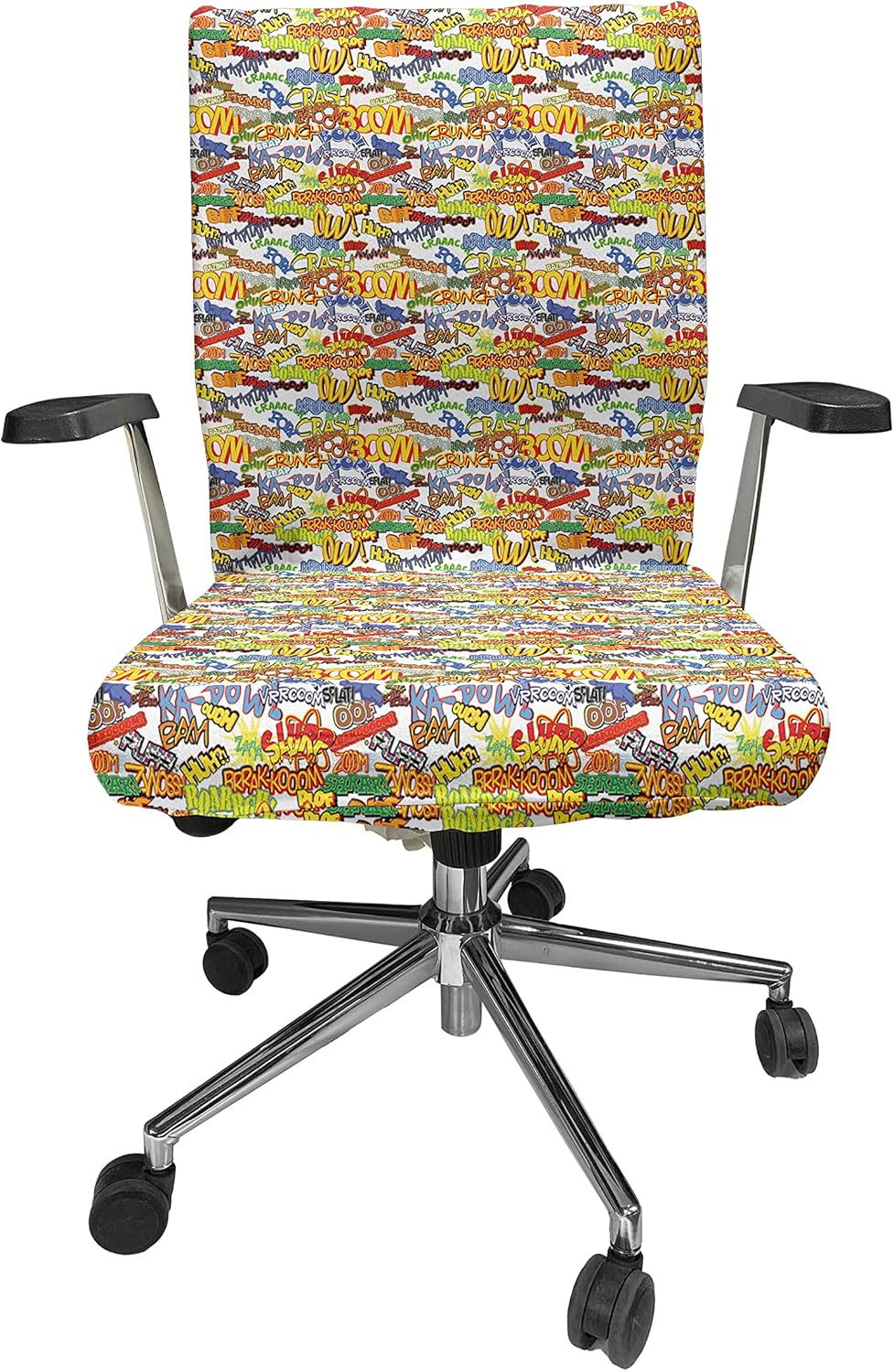 STANDARD SIZE - 2 Piece cover set. Backrest Cover: 13.5" to 17.5". Seat Cushion Cover: 13.5" to 17.5". FEATURES - Easy to install. Has ties to fasten the seat cover. For seat & backing of office chair. MADE FROM - %95 polyester %5 spandex lightweight knit fabric. Stretchable, protective printed cover. MACHINE WASHABLE - On cold cycle, Hang to dry. Soft and breathable, durable cover. No fading. PRINTED - With state of the art digital printing technology. ONLY CHAIR COVER, CHAIR IS NOT INCLUDED Add fun to your office time! Cover tear, rips and tattered edges of your old chair. It's easy to install and remove with smart elastic design. Protective and non-slip cover fits universal standard size office chairs. The material is lightweight, thin but durable. It'll add ultimate style to your gaming chair or studying area. Set assorted modes for every season; summer, Christmas, St Patrick's Day, Valentine's Day, Autumn, Sports Week and any theme you can imagine... Just pick your favorite from our thousands of various patterns. Also, these office chair covers are easy to take care of; machine washable, tumble dry on low. Or just buy one to make your day! This desk chair seat cushion protector adds personality to your space as well as shields from scratches, spills, and accidents. Elastic edges secure the cover quickly. With its stretchable design, it fits square or round seat cushions and backings of simple standard office chairs. These protector covers can be a gift for your co-workers, mother, father, uncle, aunt, son, daughter, boyfriend, girlfriend, husband, wife or simply white-collar worker friends. Before purchasing, please measure your chair size. The digital images we display have the most accurate color possible, however, due to differences in computer monitors, we cannot be responsible for variations in color between the actual product and your screen. ONLY CHAIR COVER, NO CHAIR.