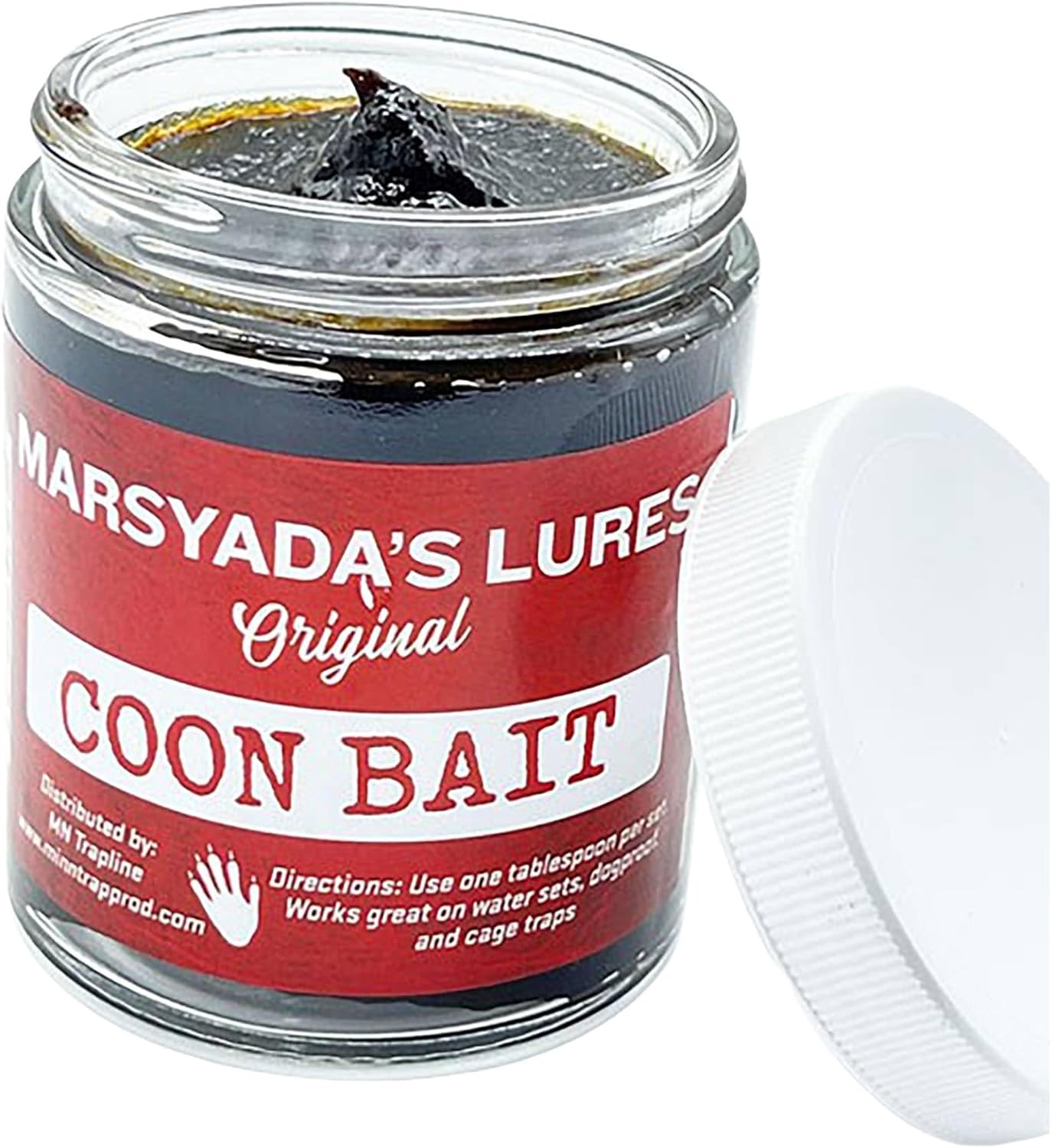 Marsyada's Coon Bait is a dense, potent paste designed to entice raccoons with its mix of their preferred foods and ingredients. This alluring, fragrant bait remains effective throughout the trapping season, retaining its strength for weeks at a set. Trusted by both amateur and professional trappers, as well as government and private damage control agents, this adaptable bait works well in various trap types. Marsyada's Coon Bait provides a dependable solution for anyone aiming to effectively attract raccoons. Key features include: a thick, concentrated paste; made from raccoons' favorite foods; sweet-smelling and tempting year-round; long-lasting; used by various trappers; effective in diverse trap types.