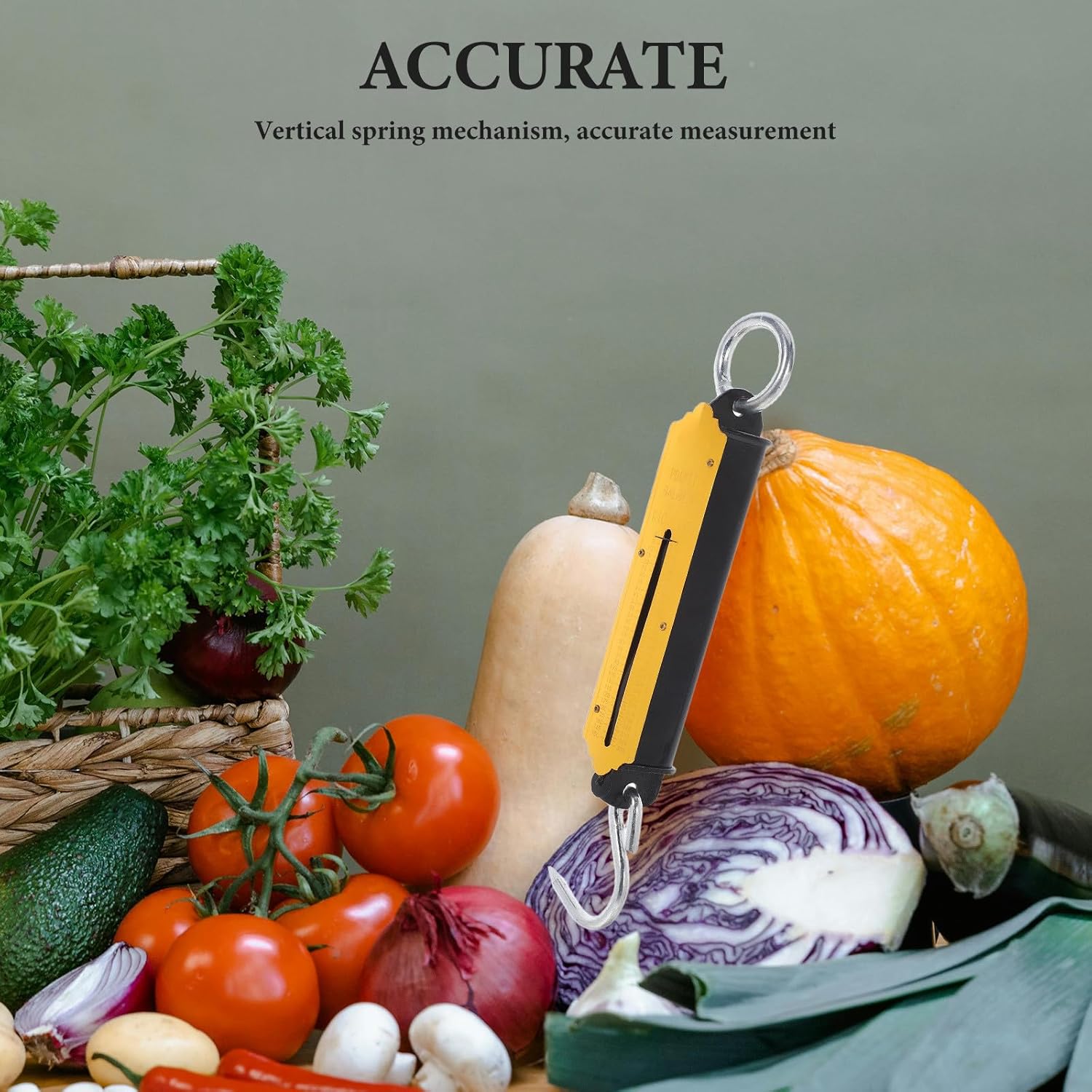 Package List 2pcs Hanging Mechanical Scale Characteristics -Product Info: Mechanical hook scale -Accurate measurement: equipped with a vertical spring mechanism, this scale provides precise measurements, ensuring you get accurate weight readings every time hanging scales for weighing -Color:Golden -Portable design: its compact and lightweight design easy portability, allowing you to carry it effortlessly wherever you go mechanical kitchen scale -Versatile use: this scale is multifunctional and can be used for weighing vegetables, luggage, and more, making it a practical tool for various scenarios hanging scale for produce -Stylish appearance: the golden exterior of this portable mechanical hanging scale is both fashionable and eye catching, making it a standout tool for various weighing needs Portable Luggage Postal Scale -Material:Metal -Size:33.00X4.70X4.50cm/12.97X1.85X1.77in -Strong load capacity: with a robust construction, this scale can handle weights up to 150 kg, ensuring longterm durability and reliability fish weigherGoods Descriptionhand held scale This portable mechanical hanging scale features a vibrant yellow design, making it easy to spot in any setting.hand scale to weigh luggage The sturdy hook allows for secure attachment, providing reliable readings for various weighing needs.portable hook scale Its vertical spring mechanism accurate measurements, good for weighing produce, luggage, or other items