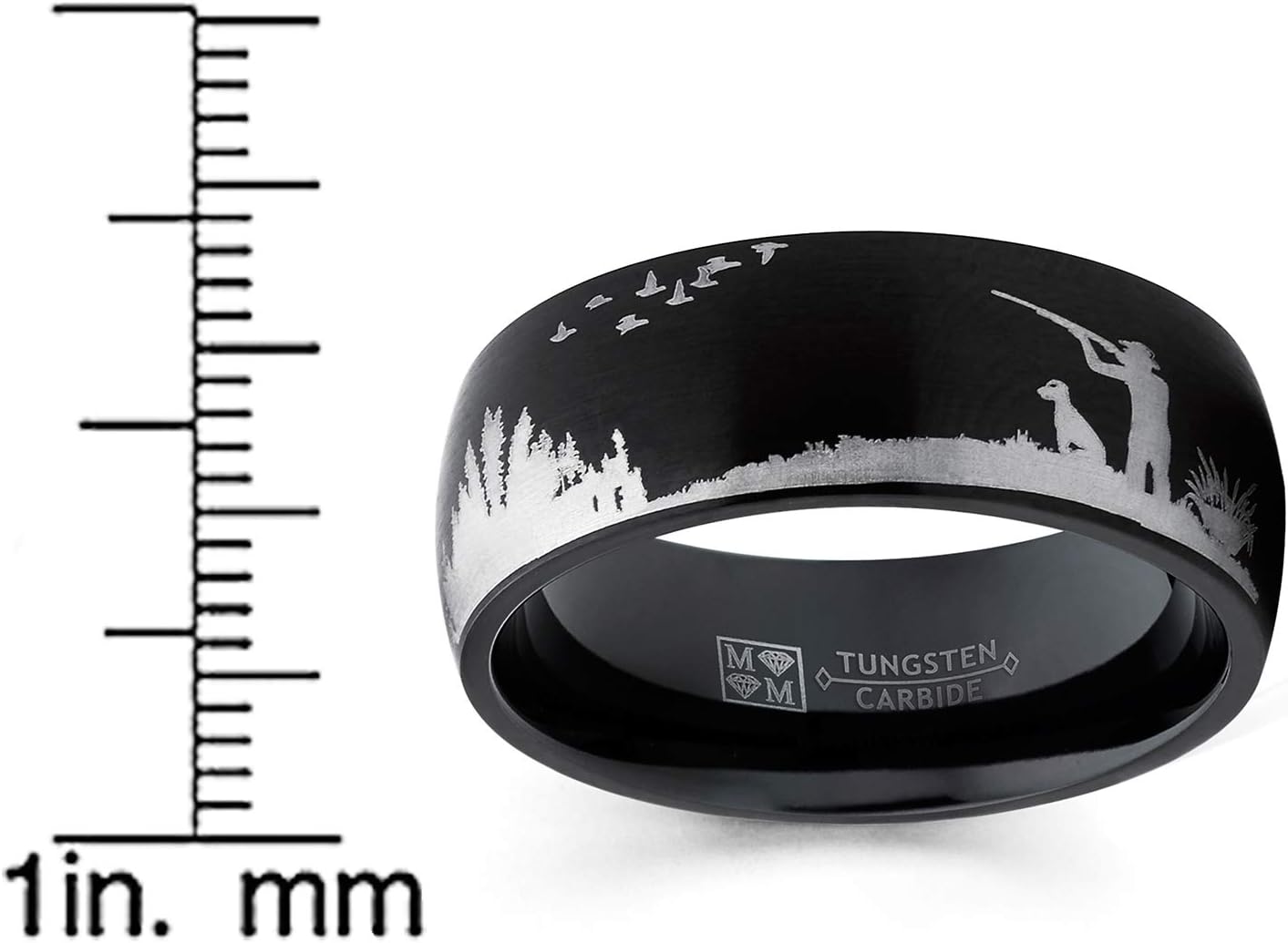 Display your true love of hunting with this laser etched duck hunting outdoor band! If you are a hunter or know one, then this is the best gift or wedding band for you. This stunning tungsten ring features a dome brushed finish band that is Comfort fitted. Our rings are hypoallergenic. Rely on the sturdy tungsten metal for a durable piece of jewelry that stands up to the rigors of continuous wear for years to come. Tungsten is four times as sturdy and strong as titanium and features a scratch-resistant finish.