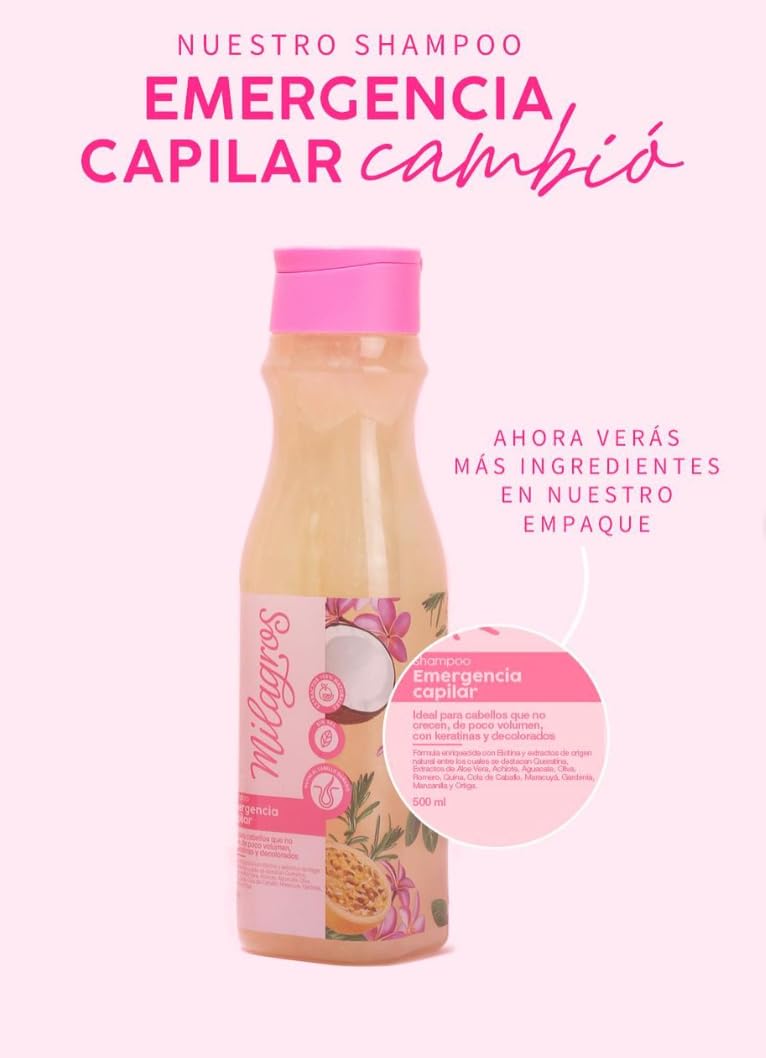 Milagros Shampoo Emergencia Capilar Colombian Hair Care Products for Natural Growth, Strengthening, and Repair Set of 1, 100% Natural