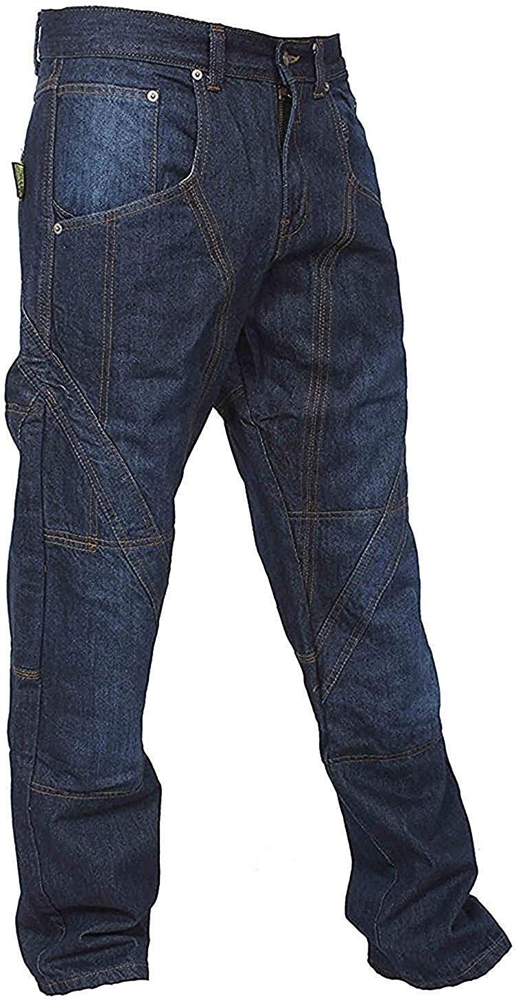 The Newfacelook men's motorcycle jeans offer a blend of functionality, safeguarding, and style to ensure optimal safety whenever needed, crafted from high-quality 14oz denim that serves as both protective and fashionable riding attire. Designed with your safety in mind, these men's motorcycle pants come with detachable armor, providing essential shielding for your hips and knees, ensuring maximum protection in case of a fall. But that's not all! These stylish motorbike jeans seamlessly blend with current fashion trends, featuring removable armor that allows them to effortlessly transition into casual wear.Durability is a key feature of these motorcycle pants for men. The high-quality stitching ensures their longevity, guaranteeing they can be your trusted riding companion for an extended period of time. To further enhance their protective qualities, these motorbike riding pants are equipped with a 320 GSM Aramid lining strategically placed in critical areas such as the knees, thighs, and seat. This specialized lining safeguards against cuts, abrasions, and heat, providing an additional layer of security. The pants also boast durable zippers, secure button closures, and multiple pockets for convenient and safe storage of your essentials.For those who value both style and protection, look no further than these remarkable Kevlar jeans. Embrace the perfect blend of fashion-forward design and top-notch safety with the Newfacelook Men's Motorcycle Jeans.