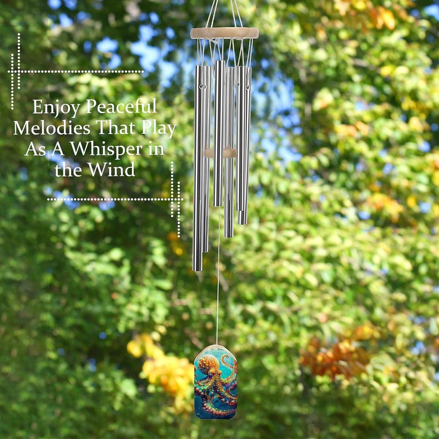 【High-Quality Materials】Well-constructed, 6 aluminum alloy metal tubes, fixed with nylon ropes, long-lasting and durable. The wooden part is made of high-quality wood and has strong wear resistance. The design is novel and well made. 【Thoughtful Memorial Gift】Express your love and remembrance with these wind chimes, making them a heartfelt memorial gift for Mom that adds a touch of grace to any outdoor setting. 【Durable Construction】Built to withstand the elements, these wind chimes are crafted from high-quality materials, ensuring longevity and continuous enjoyment of their harmonious melodies. 【Versatile Placement】Perfect for your own patio, porch, garden, or backyard, these wind chimes effortlessly complement various outdoor settings, enhancing the ambiance with their visual appeal and calming tones. 【Great Gift Idea】Whether for yourself or as a thoughtful gift, our wind chimes make for a great addition to any outdoor space, elevating the sensory experience with their soothing sounds and timeless design.