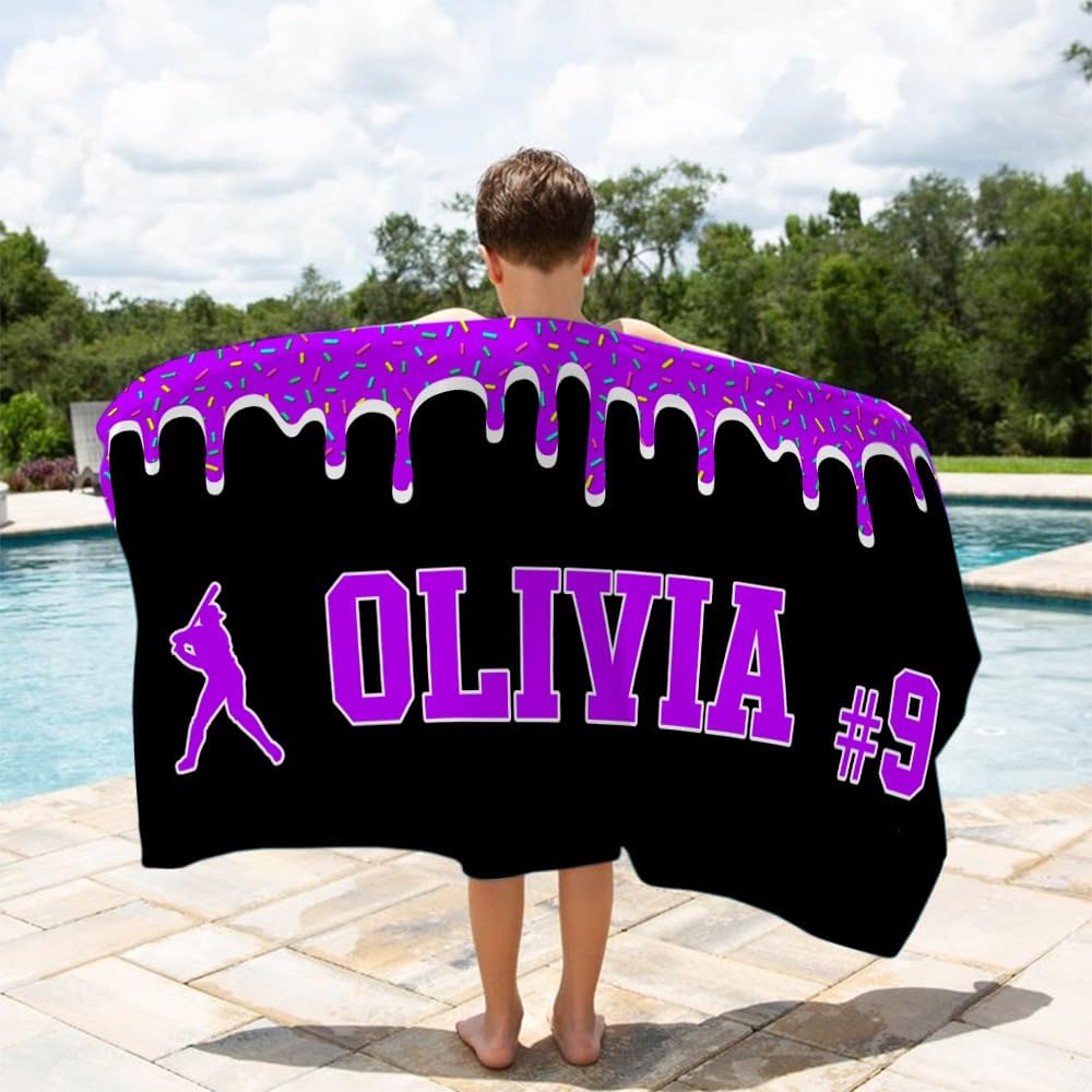 Sizing: 30in x 60in Towel Material: Printed Side Soft Poly Microfiber, Non-printed side 100% cotton Terrycloth