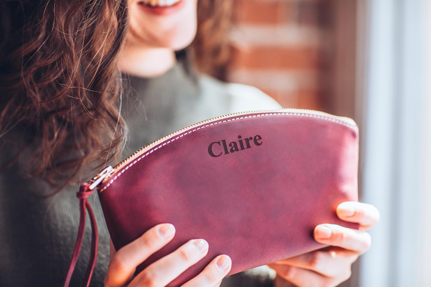 PERSONALIZED genuine leather makeup bag available in following sizes:✧ Small 6.5 x 3.8 x 2.3 inch✧ Medium 7.5 x 4.8 x 2.8 inch✧ Large 8.5 x 5.5 x 3.3 inchPresented 3 wonderful colors: Caramel, Purple & Black.Crafted with the best full grain genuine leather, this leather cosmetic bag is unique and can vary in shade, no two ever the same!✧ HANDCRAFTED WITH LOVE IN USA ✧Unique makeup bag exemplify Vintage elegant style. It is designed and handcrafted in Washington using true craftsmanship that allows leather make up bag to last a lifetime. This womens makeup bag is crafted of 100% genuine leather with natural texture! The superior finish gets even better with age. If you fold or scratch it, you create own distressed style that can be faded away by rubbing it with a wet cloth.✧ CREATIVELY DESIGNED ✧Makeup bag waterproof lining keeps safe your belongings from spilling. Be sure that makeup bag won’t tear due to handcraft sewing that keeps stitching reliable. Bag Italian zipper protects travel toiletries against fall out. This leather makeup bag is multifunctional as you get all in one: womens handbag, evening bag, elegant clutch for cosmetics, formal makeup bag for women, wedding purse, wristlet handbag for accessories, womens travel handbag, makeup bag, customized purse for women, party makeup purse, casual going out purse, personalized makeup bag gift, cosmetic bag✧ IMPRESSIVE GIFT ✧Personalized Cosmetic Bag is a unique gift for women will have you covered for any occasion including best best birthday gift for women, Mother’s day gift, anniversary gift for wife, bridal shower gift, girlfriend gift, Christmas gift for mom, personalized wedding gift, New Year gift, friend gift for women, Christmas gift for sister, 3rd anniversary gift for her, gift for bridesmaids, mom gift, friend gift, birthday gifts for women, gift for mother. Purse leaves recipients in awe!Welcome to contact us via amazon messages