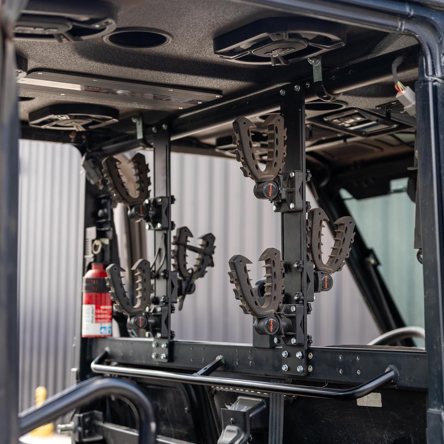 Polaris Ranger Custom Above The Seat Gun Rack Mount (4 Seat UTV) Comes with 4 Gun Grips with Fastening Bands, 2 Adjustable Sliding Track Mounts, Hardware for Assembly, self tapping screws to quickly add this accessory onto your UTV.