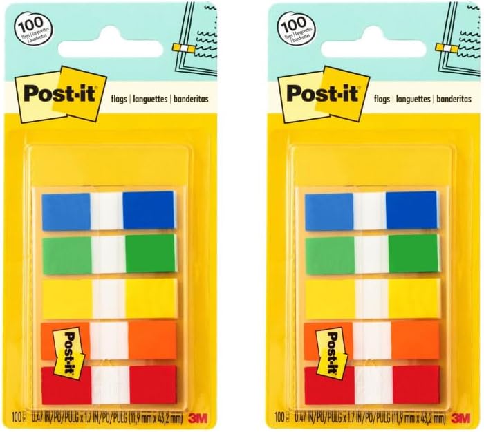 Post-it Flags let you mark what matters – no ink, no trace. These removable sticky flags are ideal for quickly finding your place without writing on pages, making it easy to color-code, draw attention to key points, and mark important pages. The adhesive backing on these reusable page markers stick securely to and remove cleanly from a variety of paper surfaces, letting you stick and re-stick with ease. Post-it sticky note flags work great for marking pages and sections in books, textbooks, notebooks, planners, journals, legal documents, and more. These handy marking flags have a writable surface so you can add personalized reminders, labels, and annotations using pens, pencils, markers, highlighters, and other writing tools.