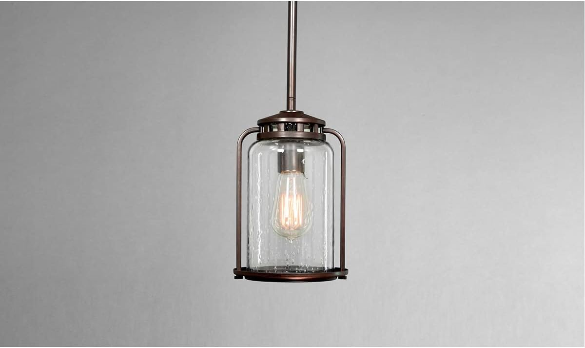 The one-light small hanging lantern from the Botta Collection provides a casual feel to complement interiors and exteriors with vintage flair. Finely crafted accents highlight clear seeded glass.