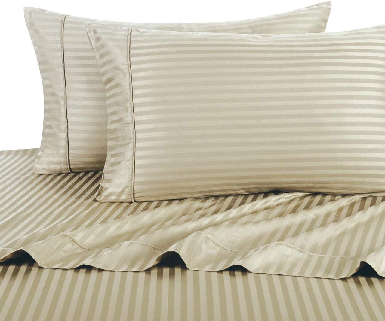 100% COOL COTTON SHEETS. Queen size ( Queen size Fitted, Flat & 2 Pillowcases). 300-Thread Count Sheets from Abripedic Brand. Deep Pocket Fitted Sheet fits up to 18" deep. Cool Cotton Sateen with exceptional soft hand. Smooth Striped Pattern Weaved Bed Sheet Set.