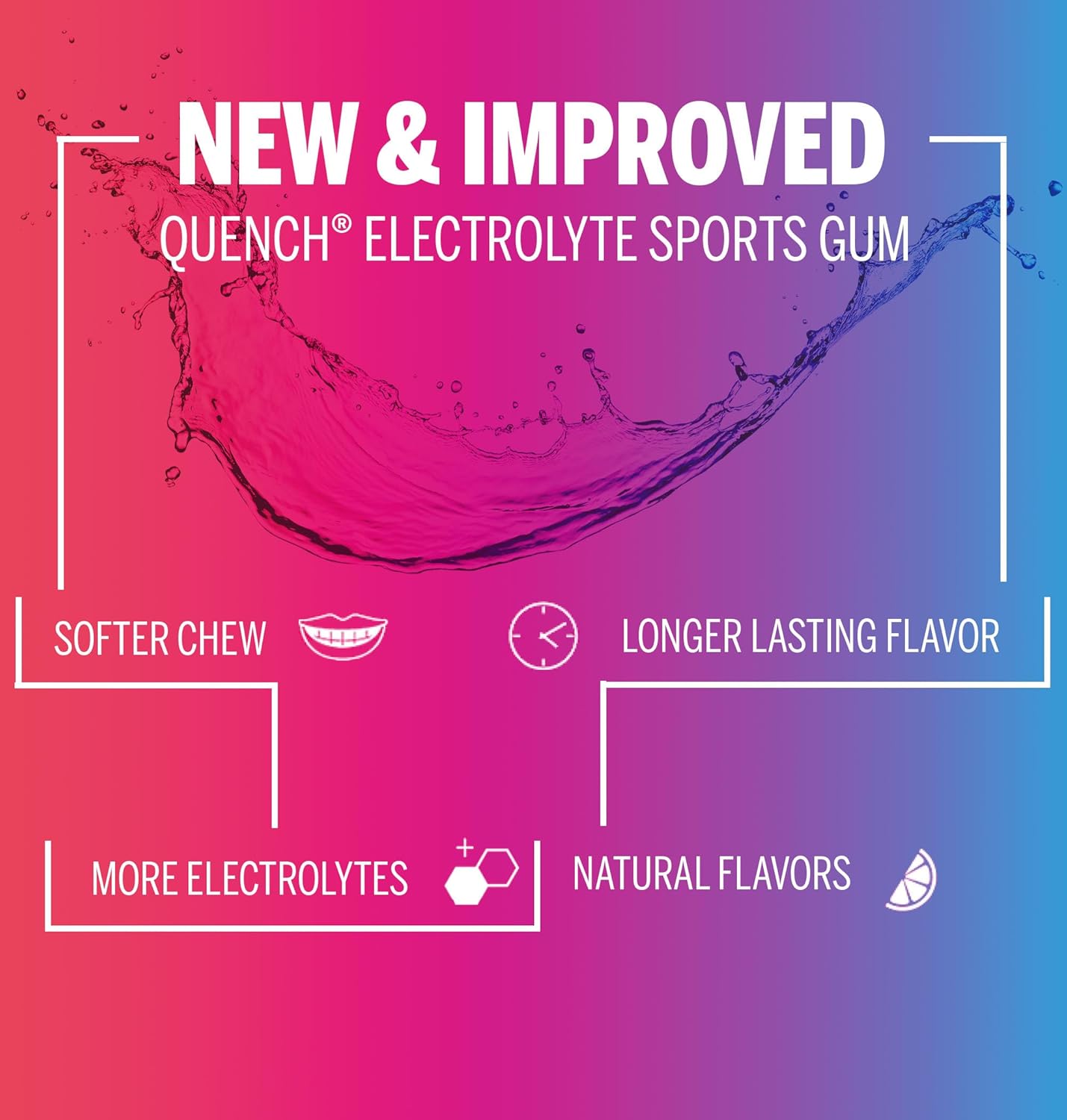 Stay hydrated and perform at your peak with Quench Electrolyte Sports Gum, specially formulated for athletes. Dehydration can lead to dry mouth, reduced body function, and decreased performance. Our unique gum is packed with electrolytes and features a sour taste that stimulates saliva production, ensuring you stay refreshed and ready to excel. Quench Electrolyte Sports Gum – your go-to solution for optimal hydration and top performance.