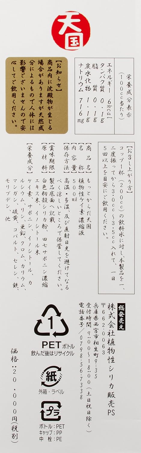 The world's first High affinity non-crystalline silica +Saponin&Inositol Safe to human body Good for beauty Not aging Good health saponin Combination inositol Combination Silica 9200ppm over Calcium 16ppm phosphorus 32ppm kalium 180ppm sulfur 44ppm magnesium 6ppm chromium 1ppm Less than cobalt 1ppm Less than selenium 2ppm iron 2ppm Copper 1ppm Less than manganese 1ppm Less than molybdenum 1ppm Less than Other minerals... Ph:11.88