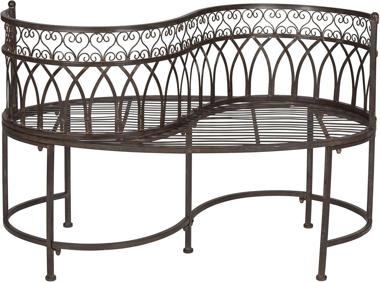 Whether you call it a kissing bench or the more formal tete-a-tete, this antique white piece takes outdoor seating to the ultimate in nostalgia and romance. Crafted of iron it is replete with over-the-top Victorian filigree curlicues and vintage charm.