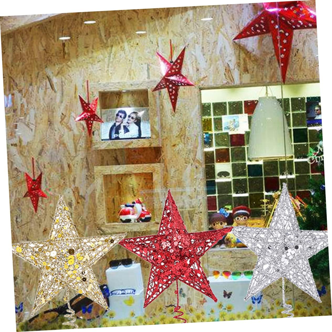 Package Include 1 x star tree topper Features - Material: Iron and Glitter christmas tree star topper - Color: Silver christmas tree star decoration - Size: 30 x 30 x decor. - Create a romantic and warm atmosphere to your gatherings, party and festival occasions christmas hanging star. tree topper star - Very easy to use just put the cone holder on the of your Christmas tree and the golden topper will stand firmly xmas tree top ornament. - Due to the production process, there may be some flaw of glitter falling from the topper occasionally Christmas decorations. - Perfect for any small tabletop Christmas tree xmas tree hanging decor.Goods Informationhouse ornaments Shiny, luxury and well made, this golden star tree topper is for you to decorate your Christmas tree.xmas tree hanging decor Your families and friends will love it.tree topper star This hollow tree topper is made of glitter and iron with spiral mount.hollowed out glittered star It will make your Christmas tree more glittering and attractive