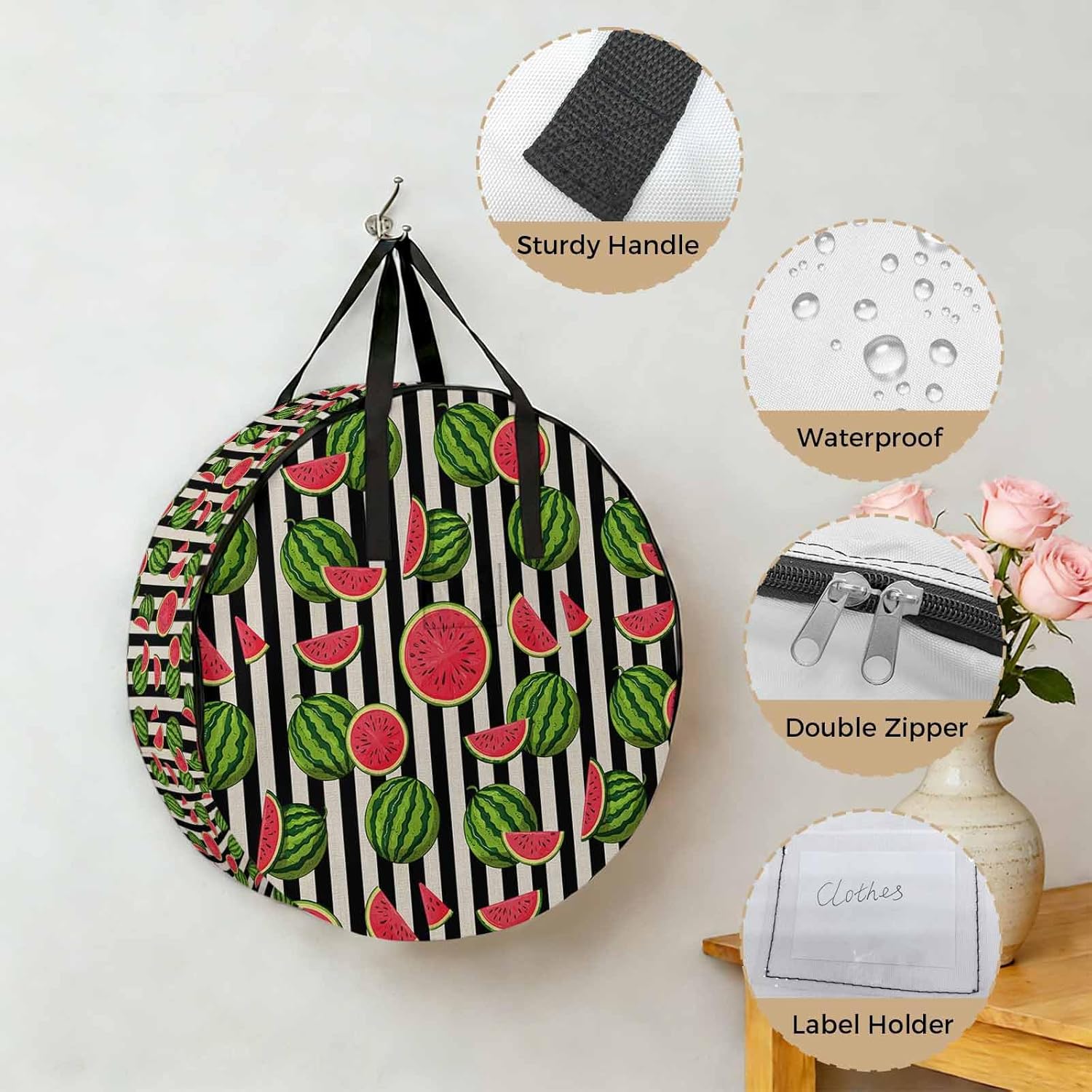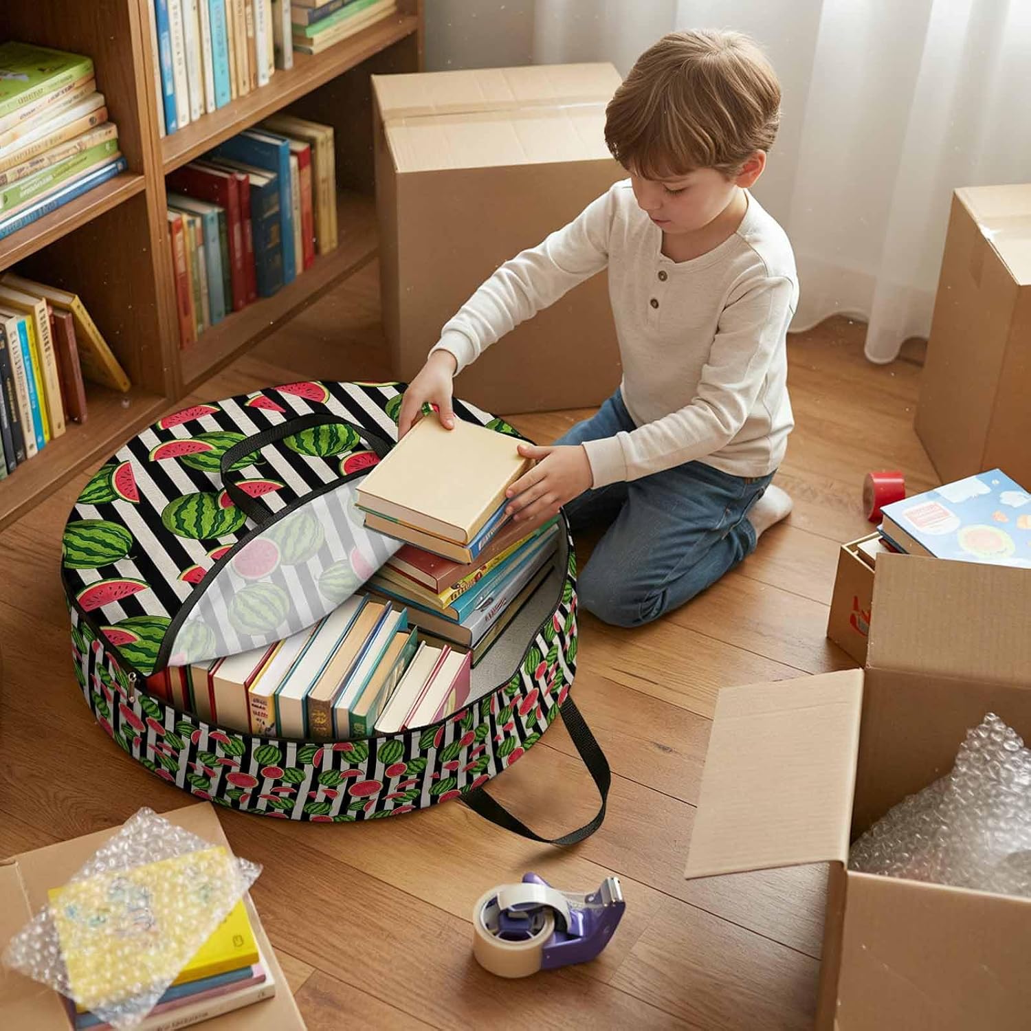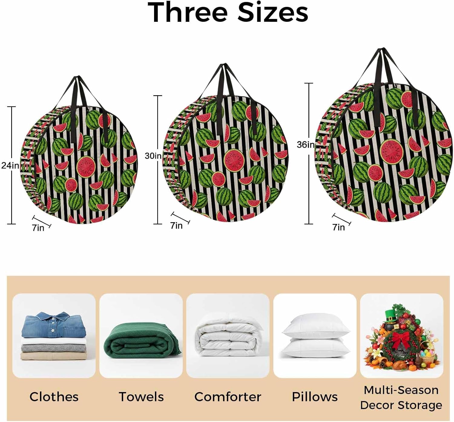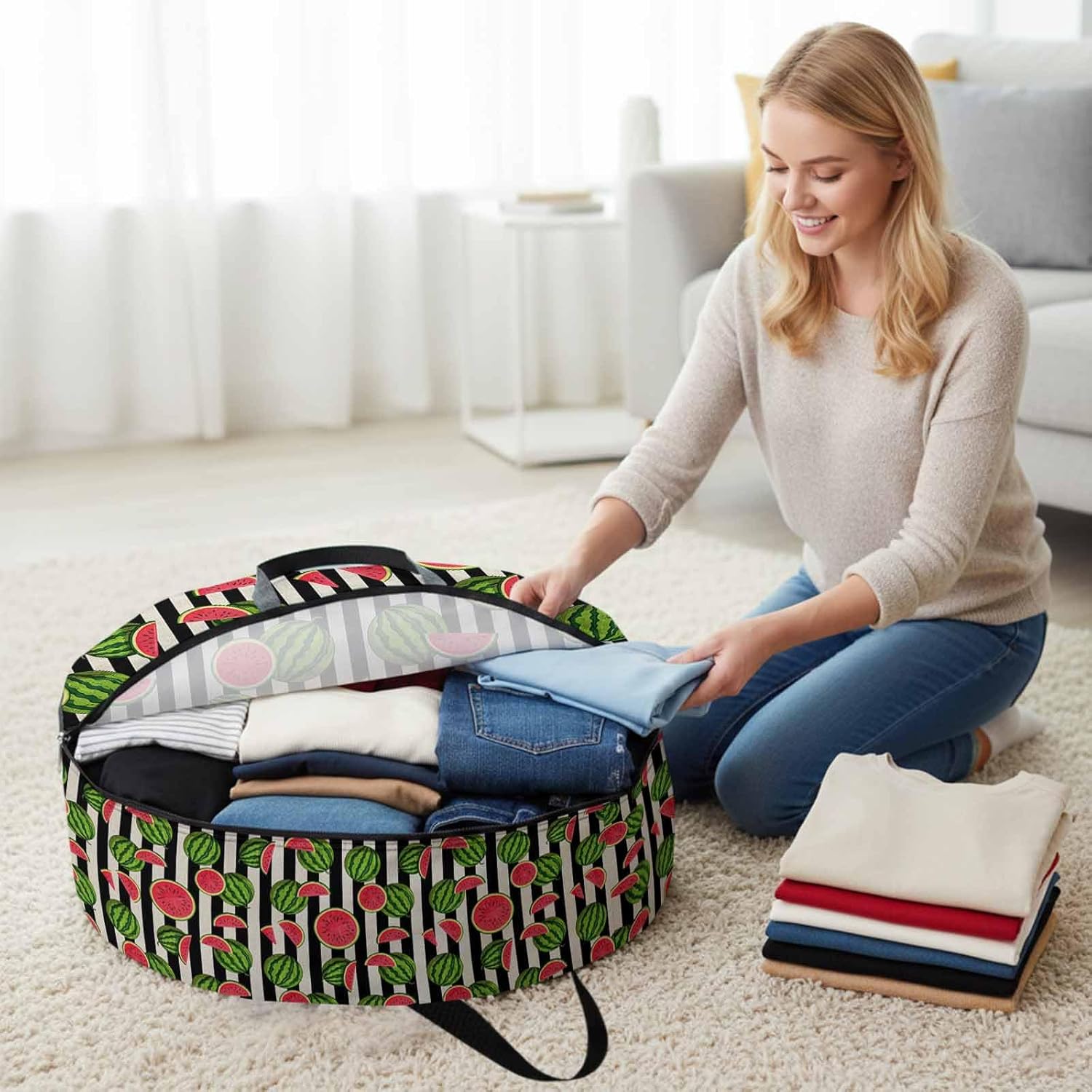 Durable Round Storage Bag – Your All-in-One Organization SolutionThoughtful & User-Friendly DesignSmooth-Sealing Zipper – Glides effortlessly and locks securely to prevent spills or lost items.Reinforced Dual Carry Straps – Ergonomically designed for comfortable grip, excellent weight support, and easy hanging.Label Card Slot – Quickly identify contents with a labeled card for fast, hassle-free retrieval.Multi-Scene Ready – Organize Anything, AnywhereFrom home to garage, travel to moving day—this bag does it all:Holiday & Seasonal: Perfect for Christmas wreaths, garlands, ornaments, and decorations.Moving & Home Storage: Replace bulky boxes for clothes, blankets, pillows, and miscellaneous items.Garage & Utility: Keep tools, car accessories, sports gear neatly stored and protected.Camping & Travel: An extra organizer for outdoor trips or luggage compartmentalizing.Daily Use: Ideal for toys, quilts, out-of-season apparel, and more.Multiple Sizes AvailableWhether you need to store small craft supplies or large comforters, we offer a range of sizes to fit your space and capacity requirements—all featuring compact portability and superior sealability.Tackle clutter with confidence using our high-performance Round Storage Bag, crafted from rugged polyester fabric designed for lasting protection. The tear-resistant material withstands scratches and daily wear while effectively shielding contents from dust—keeping holiday decorations, seasonal clothing, blankets, and valuables clean and intact year after year.