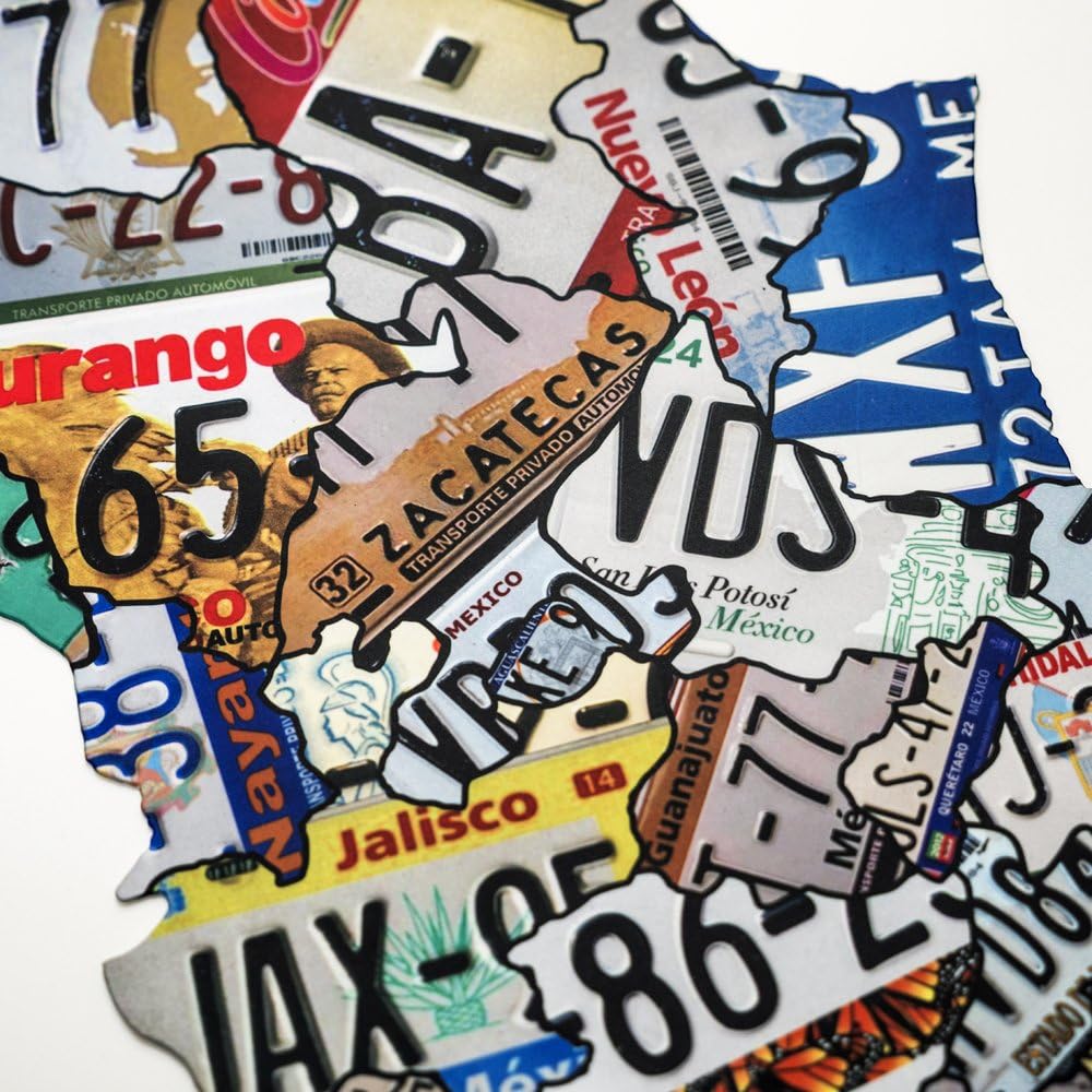 Using imagery from genuine Mexico license plates throughout the state's history, we've constructed a beautiful collage that evokes the rough and tumble, dusty and rusty look of the Southwest. Featuring art created in-house,plasma cut and this is truly an American made work of art. Measuring approximately 12"W x 38"H, our Plasma Cut Di-bond Aluminum Mexico License Plate Map would look right at home in your living room, at the bar, or maybe your office or lobby. This sign comes with holes for easy hanging and a tough surface that resists scratching and wear. Made entirely in the US of A! Plasma cut from a single piece of dibond aluminum. Image UV printed on to plasma cut dibond aluminum. This sign is not actual license plates.
