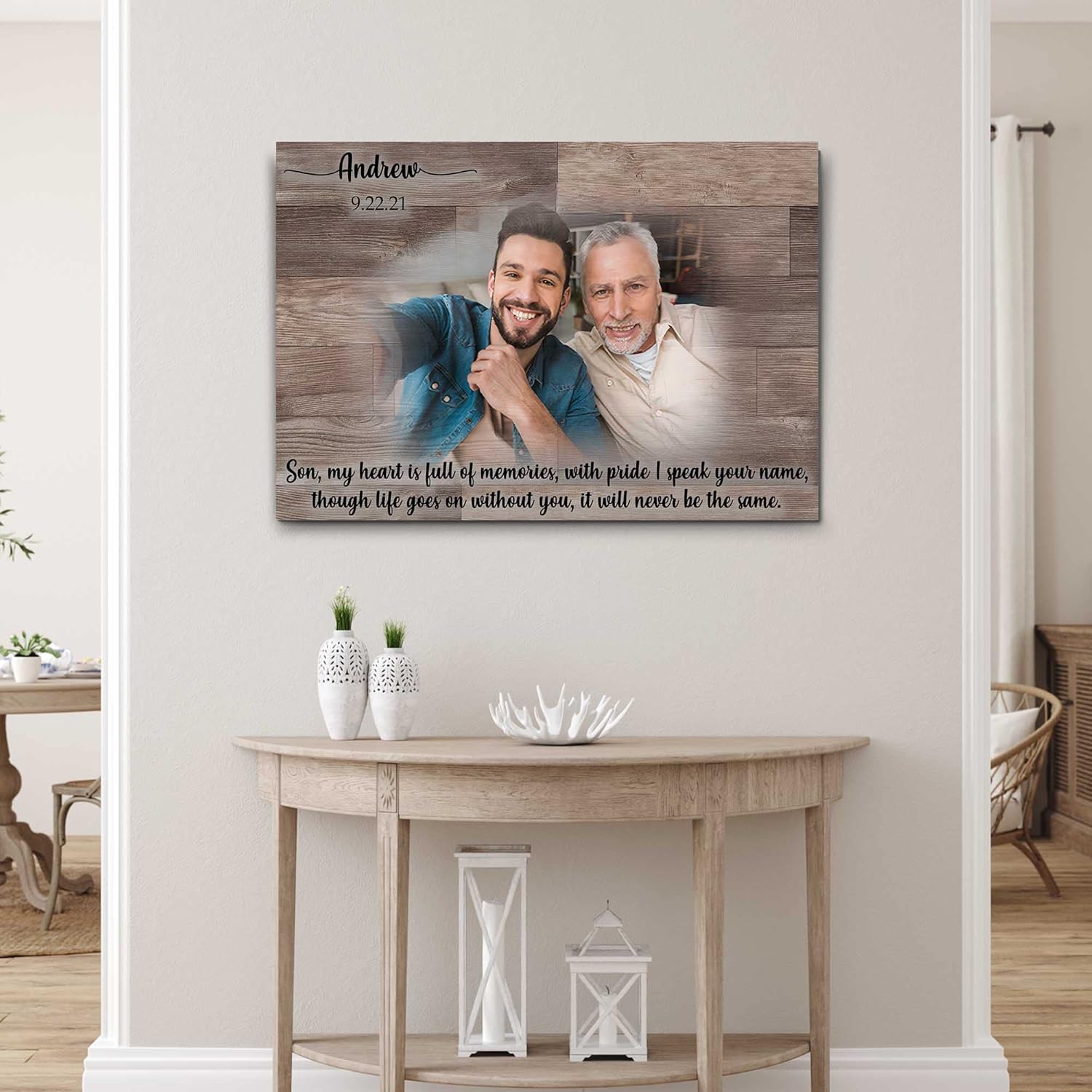 • Perfect Gift - Losing someone is really difficult, make your home and their home extra special with these personalized Dad Memorial wall art print pieces. Comfort your grieving hearts, friends, family. Surprise them on their birthdays, anniversary, and Housewarming; Perfect for Sons, Daughters, Men and Women, friends, family, your loved ones! Hang this Memorial Canvas Living Room Décor also at your Fireplace, Above the Bed, and in the Family Cabin.