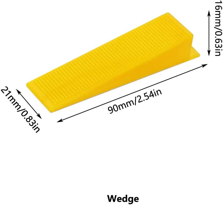 Feature:【High Efficiency Tile Leveling Kit】The tile Leveling kit contains 300 pcs leveling spacer clips, 100 pcs wedges and an installation pliers, which are great tools for floor and wall tile setup. The leveling system ensures the complete flatness between tiles perfectly. Fast and smooth, easy to turn.【High-quality Leveling Spacer Clip】There are 300 leveling spacer clips included in the kit, which are numerous and affordable. This clip made of high-quality PP material has two models, 1.5mm/0.06in or 3mm/0.12in, you can choose and buy according to your needs.【Reusable Wedge】There are 100 yellow Wedges included in the kit, 1 tile requires 4 wedges and 4 spacer clips. It holds the tiles firmly in place, keeps the tile balance in the same horizontal position and prevents tiles from moving while curing.【Durable Installation Plier】The handle of this installation pliers is covered with soft and non-slip PP material. The ergonomic design can give you the most comfortable grip, and the elastic spring uses the lever principle to save time and effort, enabling you to quickly and efficiently complete the tile work. 【Paving Tiles Save Time & Energy】The high efficiency tile leveling tools are crafted to be easily installed, reducing the need for grinding and polishing. Improve tile installation speed and reduce installer fatigue/stress. Reusable wedges can save your money.Specification:Color: Leveling Spacer Clips: ClearWedges/ Installation Plier: YellowMaterial: PPSize:Leveling Spacer Clips: 39*37mm/1.54*1.46inWedges: 90*21*16mm/2.54*0.83*0.63inInstallation Plier: 235*135mm/9.25*5.31inPackage Included:300 * 1.5mm/0.06in Leveling Spacer Clips100 * Reusable Yellow Wedges1 * Yellow Installation Pliers