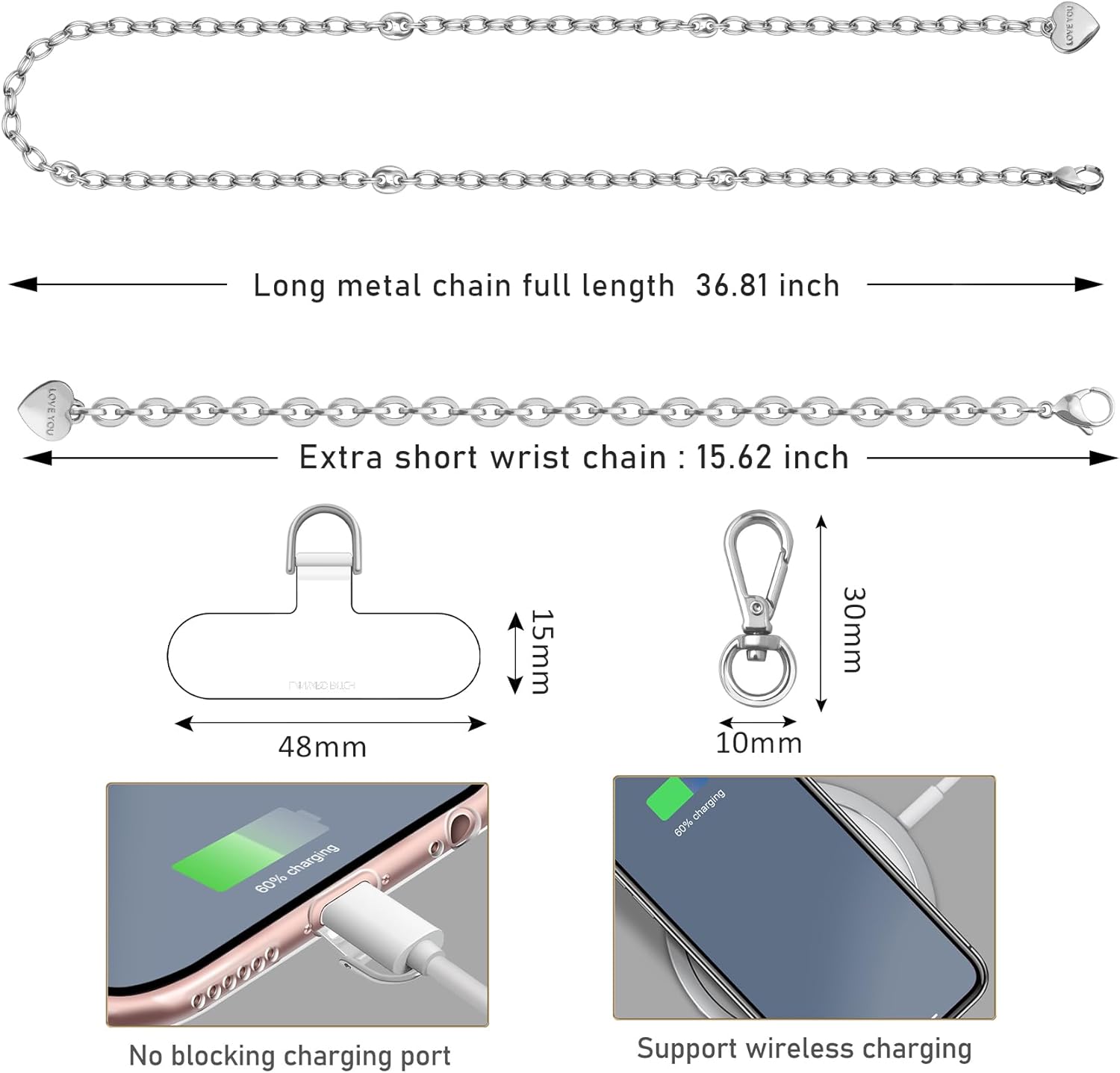 UKON Crossbody Phone Strap, 3 in 1 Pearl Beaded Phone Lanyard with Metal Cell Phone Chain Wrist Strap Adjustable Cell Phone Lanyard Neck Strap For iPhone Case with Clear Phone Tether Tabs