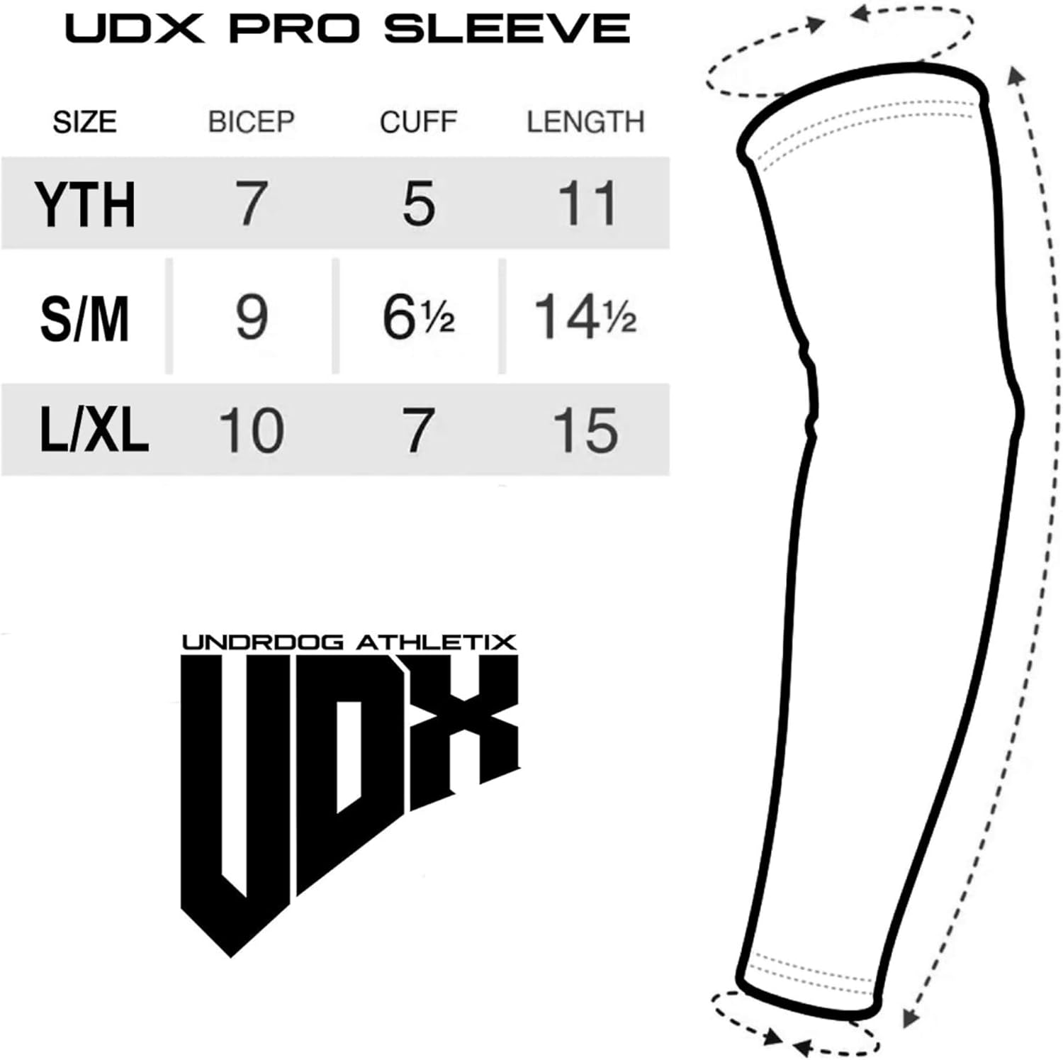 The UNDRDOG ATHLETIX 'PBJ' PRO-SLEEVE is a premium arm sleeve for men and women, made from 100% polyester, designed for volleyball, football, basketball, baseball, and golf athletes, providing UV protection, compression, and performance enhancement, powered by Jesus and inspired by Ephesians 6:10, with a UDX Emblem Logo, offering sleeves to cover arms, cooling sleeves, arm protection, compression arm sleeves, and athletic wear for a strong faith and fitness journey. SIZE TIP MODEL IS WEARING SIZE S/M ALL ORDERS FINAL SALE. SIZE EXCHANGES ACCEPTED ONLY.
