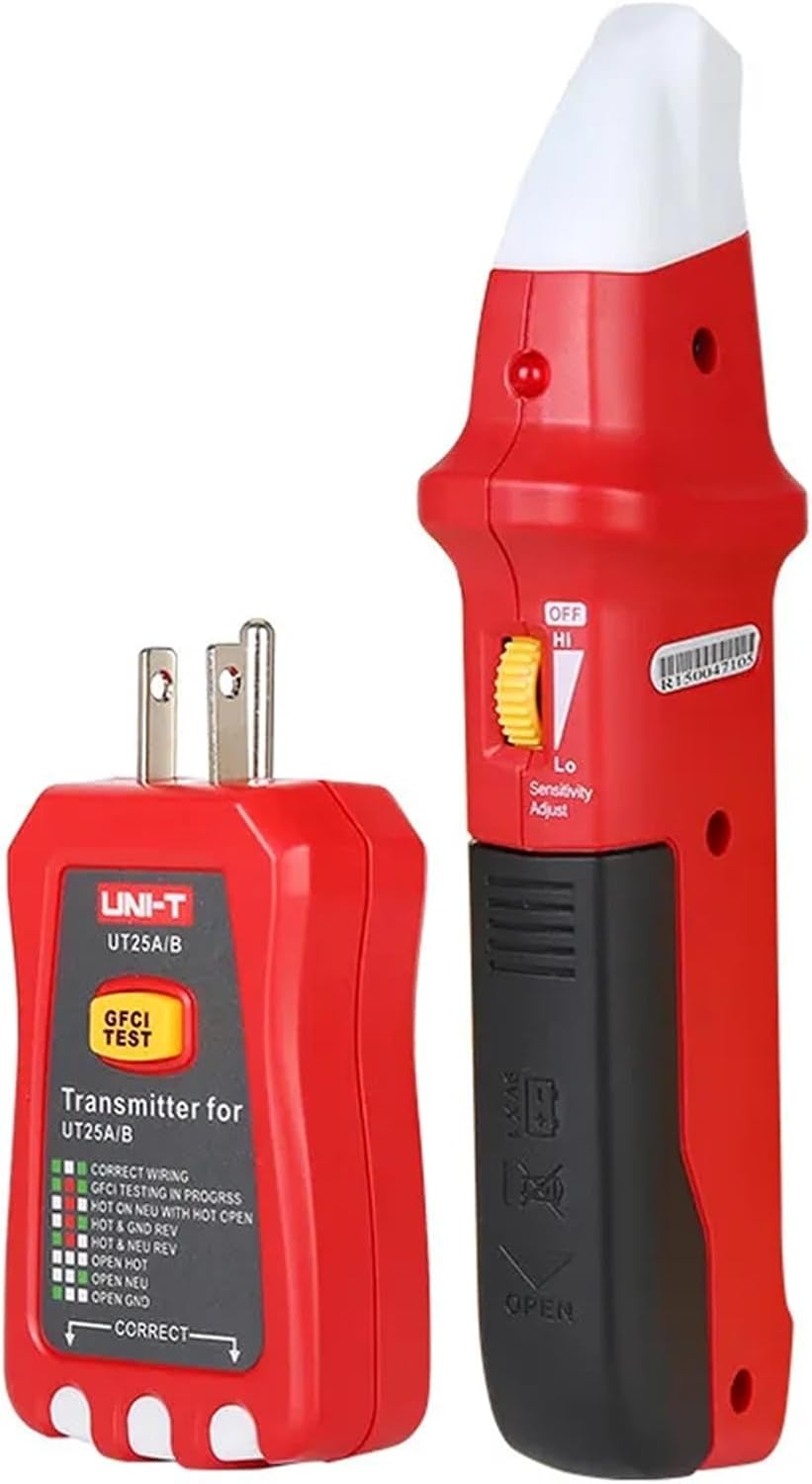 Multimeters & AnalyzersUT25A Indicator Professional Automatic Circuit Breaker Finder Socket Tester Electrician Diagnostic-tool with LED Professional circuit breaker finder with stable performance and accurate test. Suitable for house, office, power network reconstruction, etc.Features:Find circuit breaker or circuit fuse quickly and accurately.Sensitivity can be adjusted through the ON/OFF switch.The operator can determine the status of circuit connection according to the 3 LEDs.NCV indicator light is only for UT25B.Support GFCI test on socket.The receiver is powered by a 9V battery(not included).The transmitter works on 110-125V.Specifications:Receiver:Type: UT25AOperating Voltage: 90-120VOperating Frequency: 50-60HzPower Supply: 1 * 9V Type 1604/6F22 Battery(not included)Operating Temperature: 5C-40CTransmitter:Working Voltage: 110-125VOperating Frequency: 50-60HzFuse: 1A, 250V, Dia.:4*11mmReceiver Size: 19 * 5 * 3cm / 7.48 * 1.97 * 1.18inReceiver Weight: 91g / 3.22ozTransmitter Size: 10.5 * 5 * 2.5cm / 4.13 * 1.97 * 0.98inTransmitter Weight: 79g / 2.81ozPackage List: 27.5 * 16 * 4cm / 10.83 * 6.3 * 1.57inPackage Weight: 261g / 9.25ozPackage List:1 * Circuit Breaker Finder(Receiver)1 * Socket Tester(Transmitter)1 * User Manual