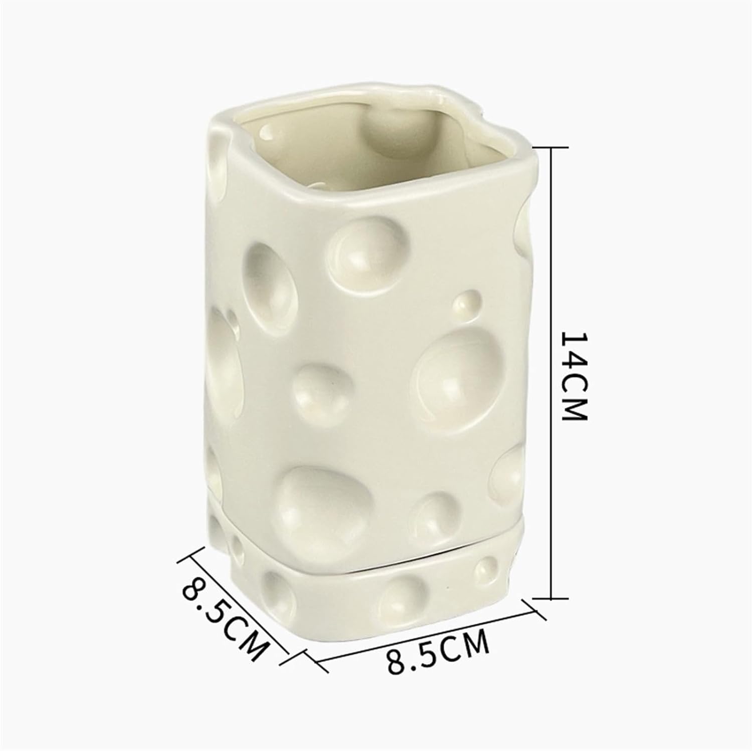 This considerate kitchen essential gift fosters joy and creativity in the kitchen.Creative Cheese Utensils Holder, Ceramic Utensil Crock for Countertop, Fashion Utensil Caddy Organizer Cutlery Drain Rack for Kitchen DecorProduct Name: Creative Cheese Ceramic Cutlery Drain RackMaterial: CeramicSize: 8.5×8.5×14cm(3.34×3.34×5.51in)Color: White, SilverApplicable scenarios: Kitchen, Dining Room, etc.Items per Package: 1 Piece OnlyNote:1. Please check the size and color before purchasing.2. Does not include items other than those shown in the product photo.3. Please note that due to the different monitors, slight chromatic aberration may occur, please understand.4. The above data is for reference only, the size is manual measurement, each variable may be different, please refer to the actual product, thank you.