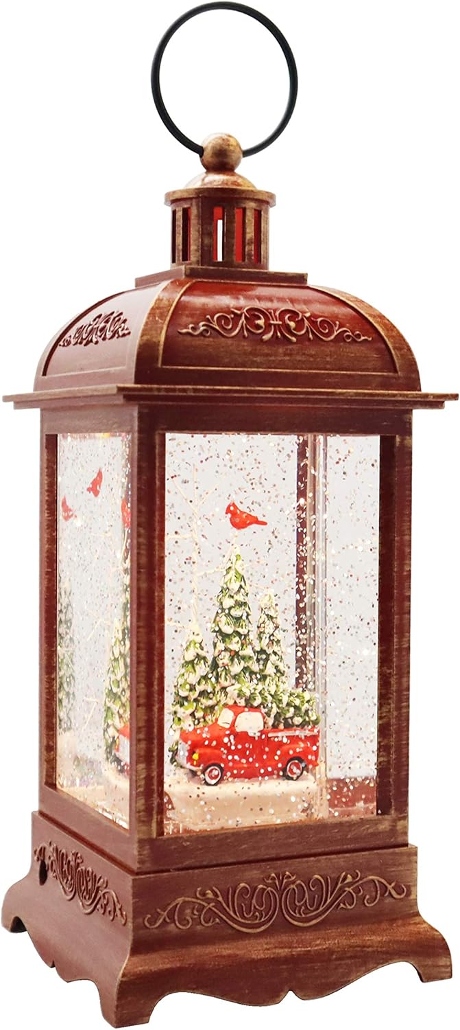 Dive into a world of shimmering glitter and musical wonder with the Victory Creative Red Truck Lighted Snow Globe Lantern. At 10.5 inches, this lantern is not just a decorative piece; it's an experience. Whether you're in the mood for a continuous glitter swirl show or the melodious charm of its music loop, this lantern has got you covered. And for those evenings when you simply wish to set the mood without constantly monitoring, its 6H ON - 18H OFF timer comes in handy. Crafted with care from durable plastic, and powered by 3 x AA alkaline batteries, it promises to be a treasured part of your decor for years to come.