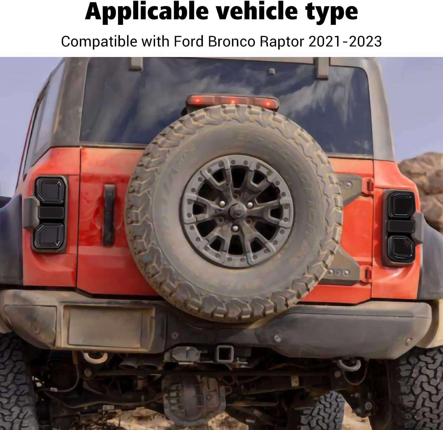 Model: for Ford Bronco Raptor 2021+. Feature: -Completely changed the Original look, it slip over the factory plastic and fits perfect. Provides a high class and fashion decor style for your Car.change the ordinary design and add unique color. -Made of High Quality ABS -Can be installed directly, no drilling or cutting required, just press the trim on the Original parts. Don't need any other tool, no damage to your Car After sales service -If you have any suggestions or questions for our products, please contact us as soon as possible. Package Include:6Pcs Rear Tail Turning Warning Lamp Cover . Attention: ✔ Please compare your original Car with our images before placing the order. ✔ For Ford Bronco Raptor 2021+.