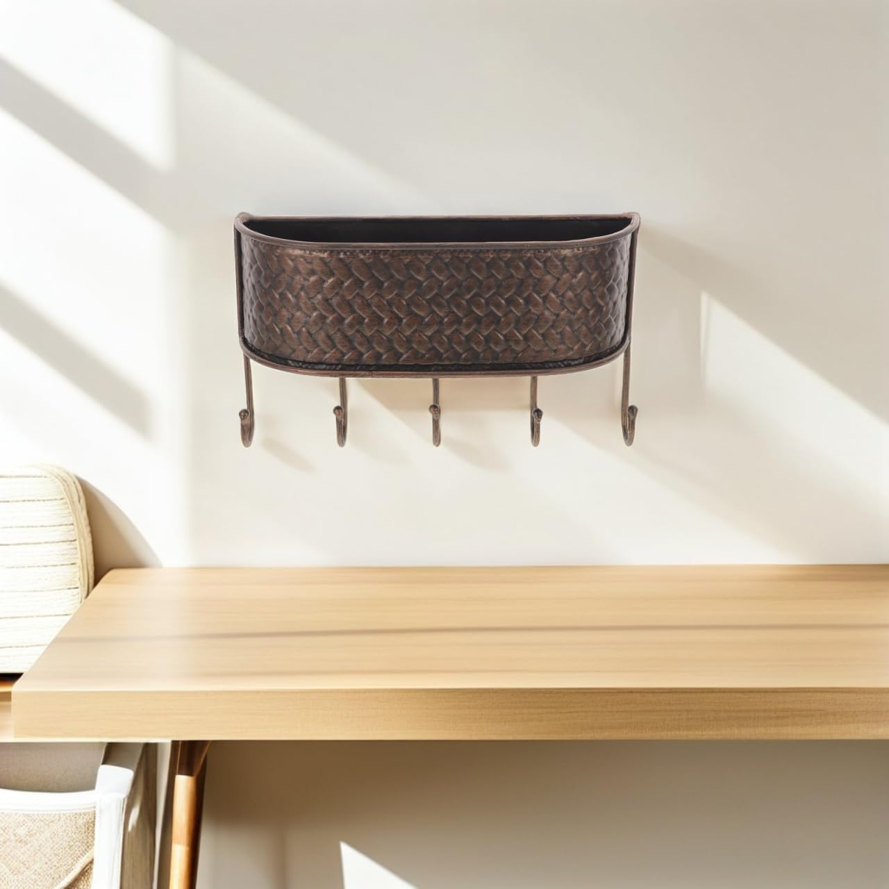 DescriptionElevate your household décor with this vintage wall mount mailbox, which serves as both a key rack and multipurpose utility hooks. The sturdy and wrought iron construction of this key organizer offers performance, making it ideal for those seeking a functional and decorative solution for entryway storage and key management.Features-Color:Coffee-Material:iron-Size:30.00X18.00X8.00cm/11.81X7.09X3.15in-Home Accent: The iron mailbox and key racks for wall provide a unique home iron decoration, instantly elevating your entryway or foyer with rustic vintage appeal-Organized Entryway: With key hooks for wall and dedicated mail container for wall, this key holder farmhouse ensures a tidy and organized arrival place for all household members-Multi-Storage: Enjoy the dual benefit of a wrought iron storage basket and metal key hanger, perfect for managing keys, mail, coats, and small accessories in one location-Robust & : The wrought iron baskets ensuring resilient use as a garage hook wall storage tool and wall coat hanger, maintaining shape and integrity over time-Quick Setup: Designed for user-friendly installation, this wall mount key organizer and wall hanging rack allow for fast setup, bringing convenience and order at home