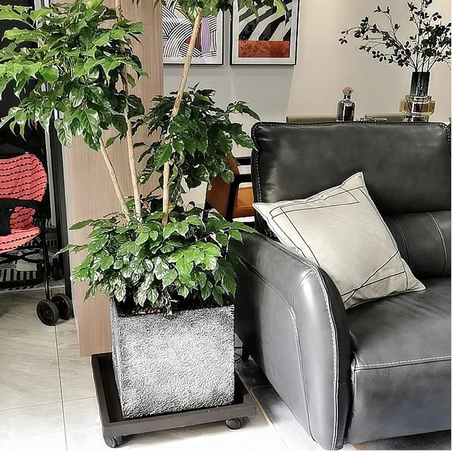 • [Indoor & Outdoor Practical Use]: It's designed to run on patios, wooden floors for outdoors. Also the caddy rolls smoothly over hardwood, concrete, and even carpet, which is perfect for indoor use. Not only suitable for plant pots, but also for anything in your home that needs to be moved, such as an umbrella, humidifier. Three available colors and sizes to perfectly match your home decor or garden.