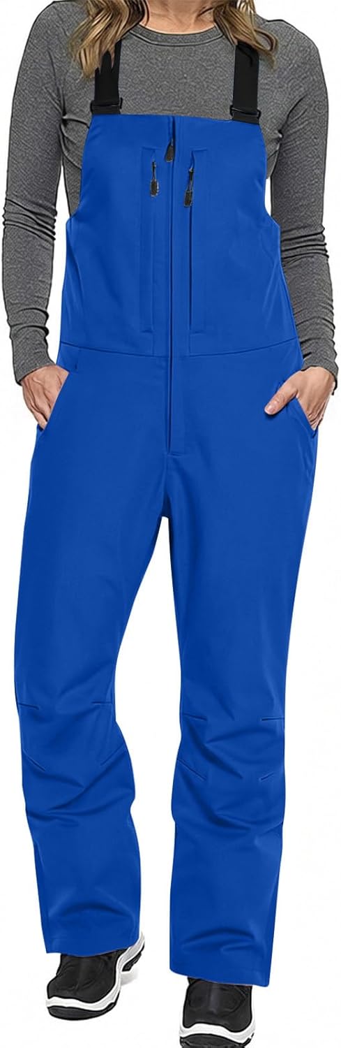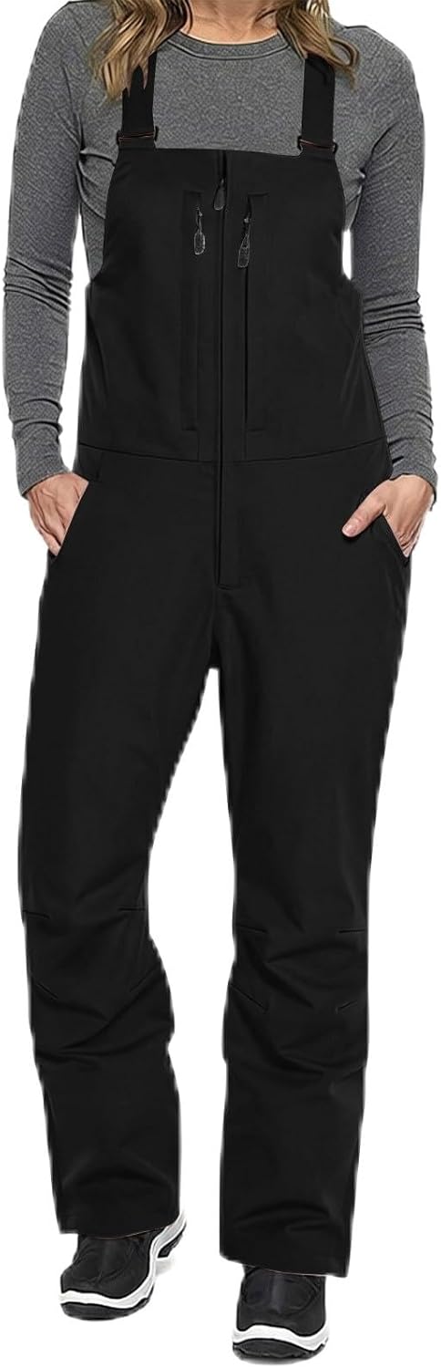 Women's Snow PantsThese snow pants are made with waterproof and windproof fabric. They help keep you dry and warm during winter sports.Features:Weather Protection: Waterproof material helps keep snow and moisture outWarm Insulation: Inner lining helps retain body heat in cold conditionsAdjustable Fit: Shoulder straps can be adjusted for comfortGood for Winter Activities:Suitable for skiing, snowboarding, and other outdoor winter activities. Can be worn with thermal layers for added warmth.Practical Details:Includes multiple pockets for small items like ski passes. Reinforced ankle areas provide added durability.These snow pants offer protection from cold and wet weather. The practical design works for various winter sports and outdoor activities.Womens Ski Snow Bibs Pants Insulated Water Resistant Overalls Snowboarding Winter Waterproof Pants Women