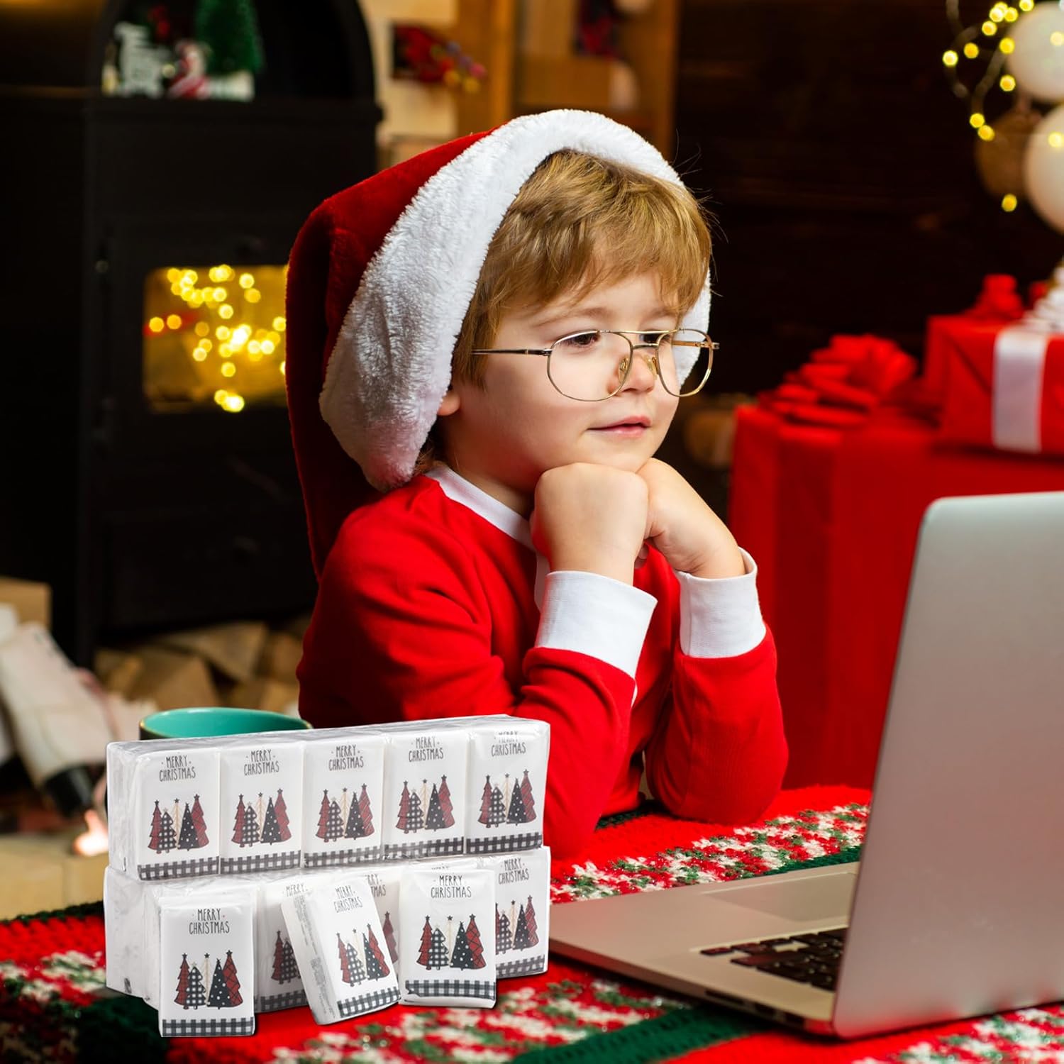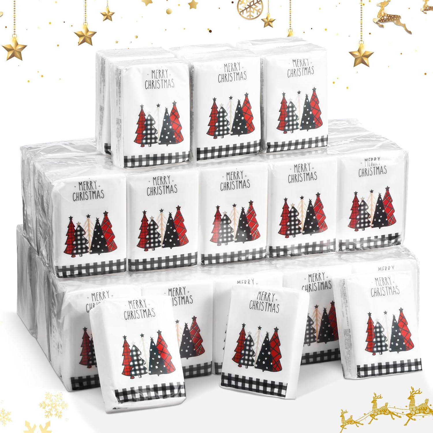 Features: Christmas Small Tissue: You will receive 100 packs Xmas facial tissues. Each pack includes 10 sheets of tissues, a total of 1000 tissues in a set, enough for your Christmas party or holiday travel needs. Merry Christmas Tissues Bulk: The mini tissues packs is printed with Merry Christmas, Christmas tree, black white plaid, red plaid, with blessing phrases and bright colors, classic and festive, easy to get most people's compliments. Christmas Wallet Tissues: Christmas travel size tissues can be applied for funeral, housewarming, weddings, parties, cars, cafes, offices, bedrooms, libraries, travel, school, bags, pockets and more to make life convenient. Specifications: Material: paper Unfolded Size: 7.9 x 7.9inches/20 x 20cm Folded Size: 2.8 x 2.2 x 0.8 inch Color: as picture shown Quantity: 100 packs Package Includes: 100 x Christmas pocket tissues Note: The size may exist little difference due to hand manual measurement. Due to brightness of your monitor and light brightness, the real color of the item may slightly different from the pictures shown on.